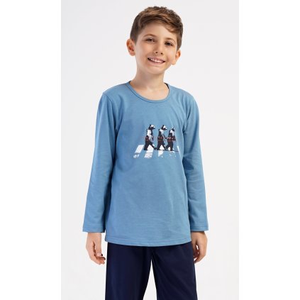 Komfortní pyžamo pro mladíky, kteří nemají rádi nepohodlné a nepadnoucí pyžama. Triko má dlouhé rukávy, volnější střih, elastické manžety a také kulatý výstřih. Na přední straně je potisk, který se mladíkům bude líbit. Kalhoty jsou kárované, dlouhé. Nohavice mají elastické manžety a také pas. Díky živým barvám padnou každému chlapci.