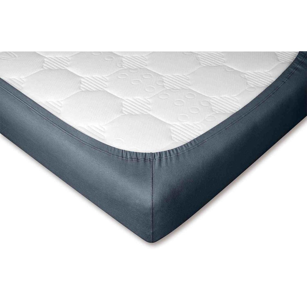 Napínací jersey prostěradlo v tmavě šedé barvě je ušito z kvalitní směsi 95 % česané bavlny a 5 % elastanu. Tato kombinace zajišťuje vysokou pružnost, rozměrovou stálost a dokonalé přilnutí k matraci. Hladký jersey materiál je příjemný na dotek a ideální pro celoroční použití.