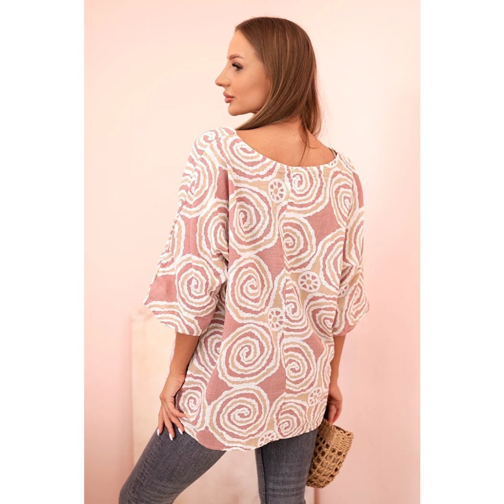 Dámská bavlněná blůza s etnickými vzory a ohrnutým rukávem