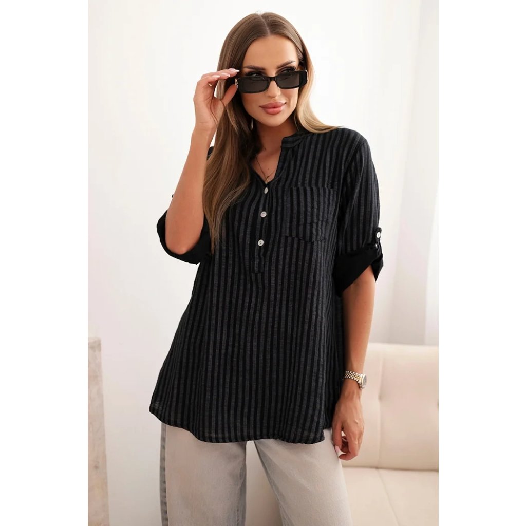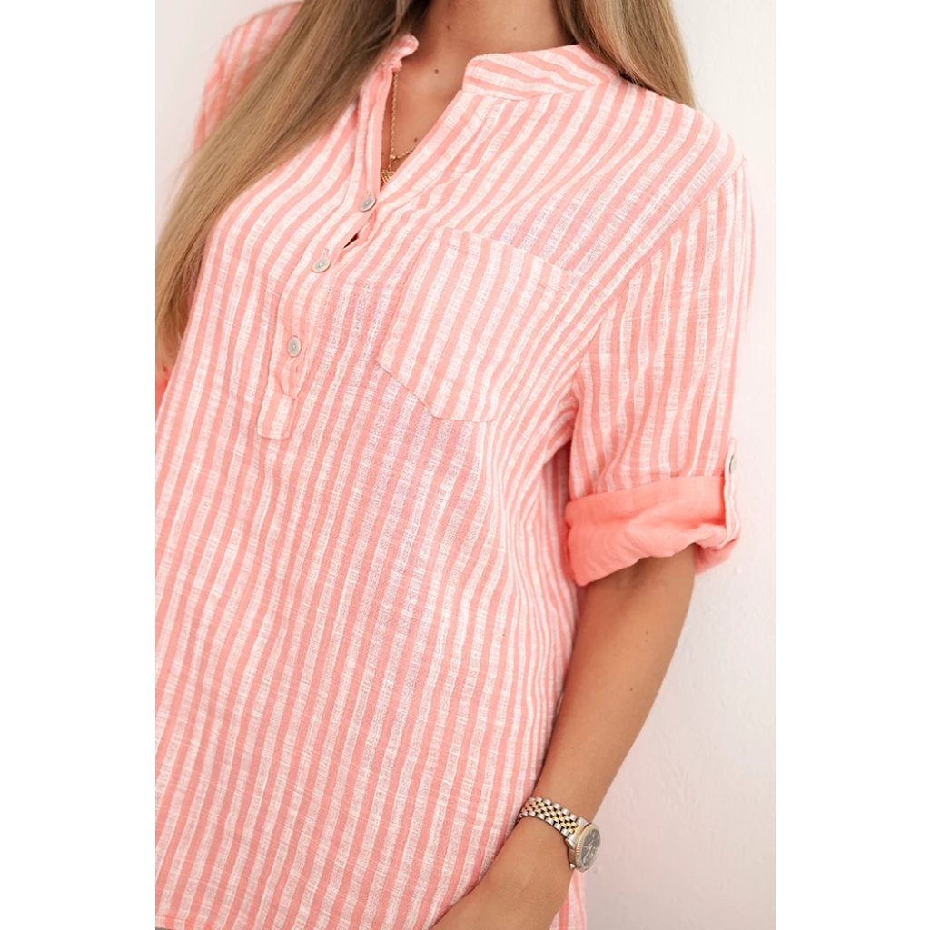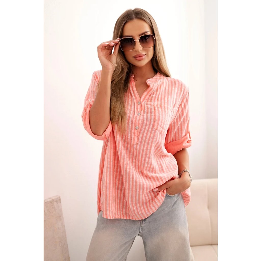 Dámská bavlněná košile v proužky s kapsou