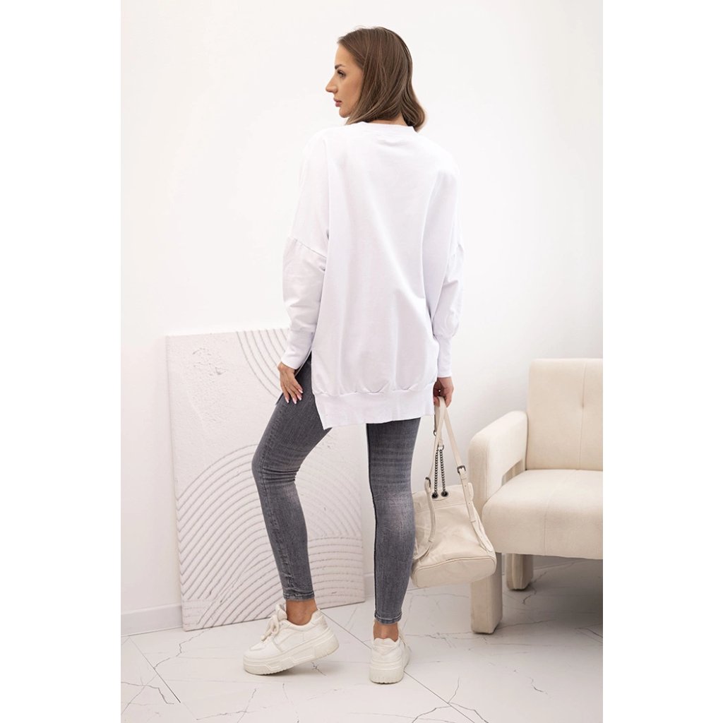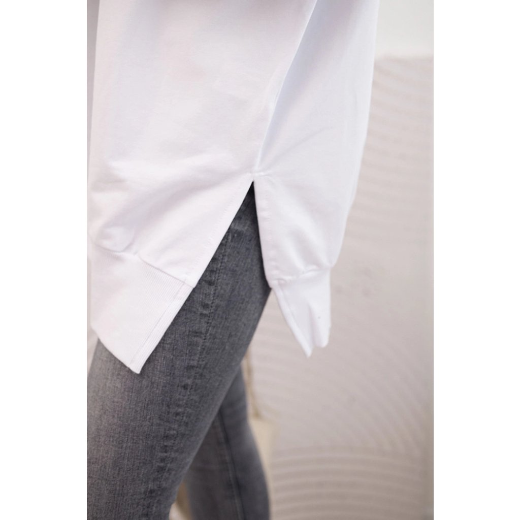 Dámská mikina s dlouhým rukávem a širokým lemem na spodním okraji je pohodlnou a módní volbou pro každodenní stylizace. Vyrobena z vysoce kvalitního materiálu, 90% bavlny a 10% elastanu, zajišťuje pružnost a měkkost, což garantuje pohodlí po celý den. Oversize střih se širokým lemem a bočními rozparky dodává mikině volný a moderní vzhled. Ideální na chladnější dny, skvěle se hodí k legínám, džínům nebo sukni. Je to univerzální prvek garderoby, který spojuje pohodlí s módním stylem. Velikost je univerzální a bude vhodná pro dámy ve velikosti M, L, XL.