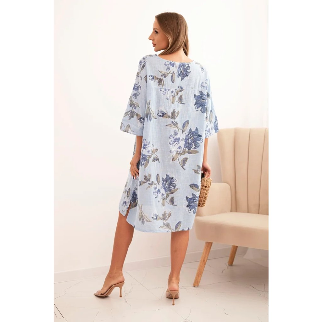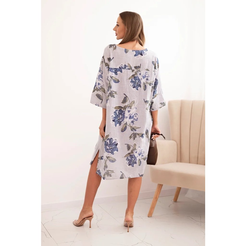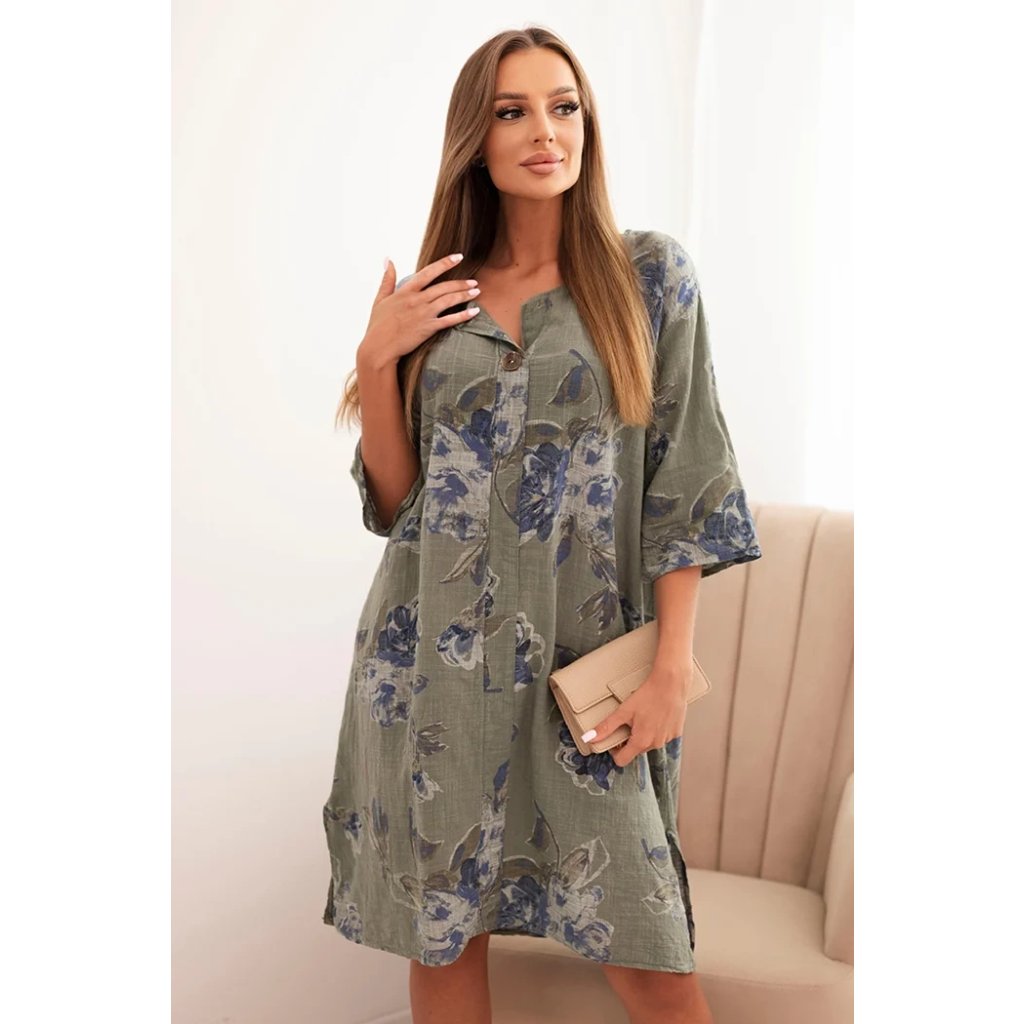 Dámská bavlněná šaty s květinovým vzorem a 3/4 rukávem fango