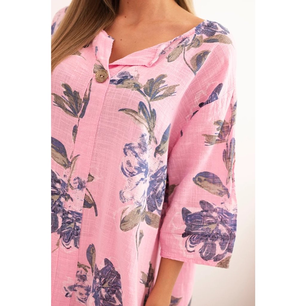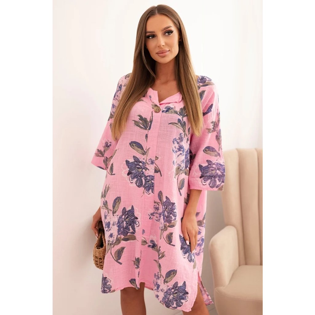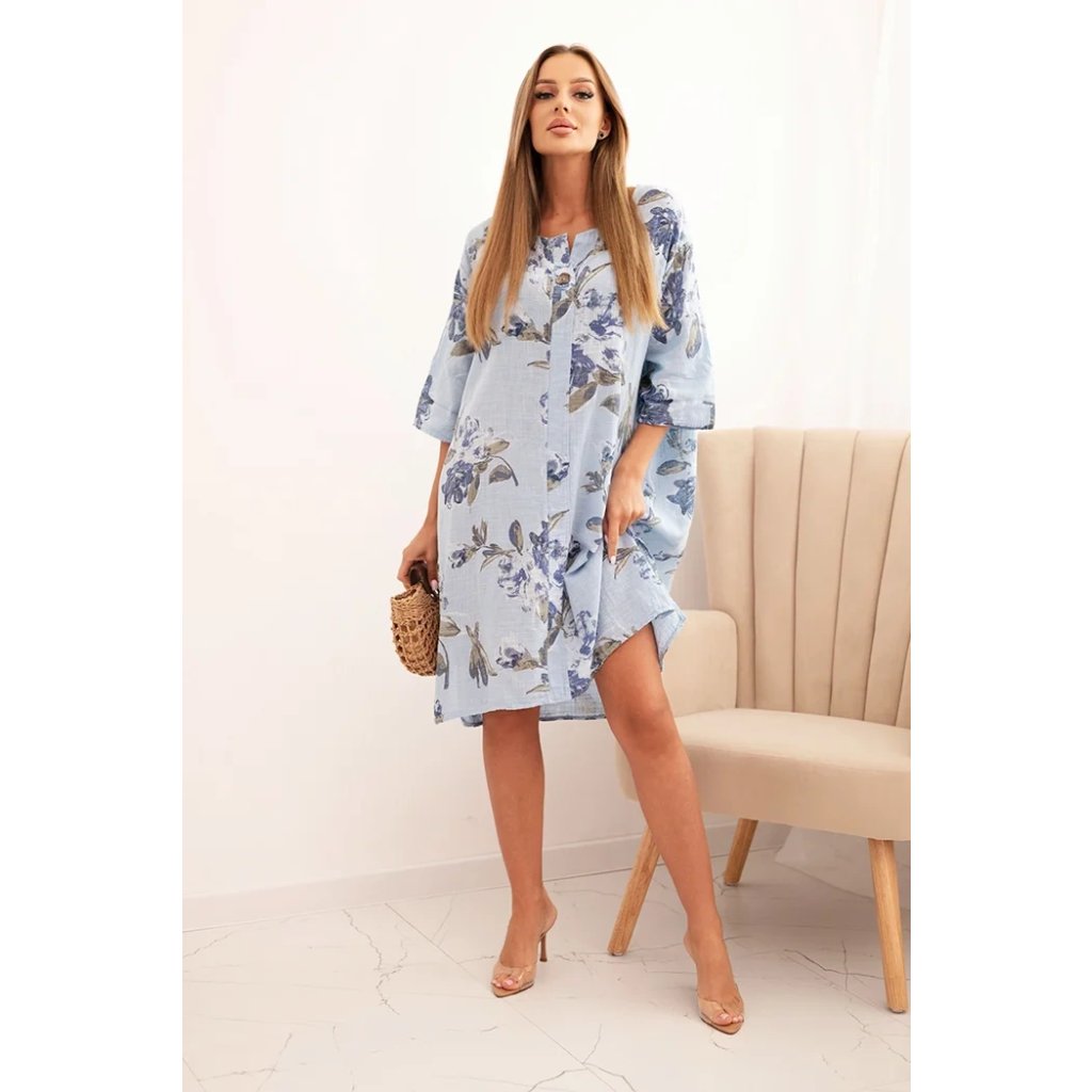 Dámská bavlněná šaty s květinovým vzorem a 3/4 rukávem fango