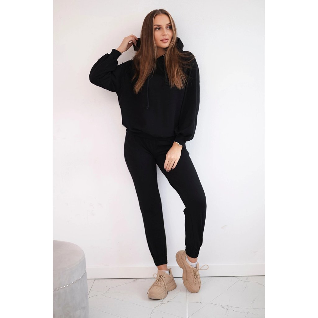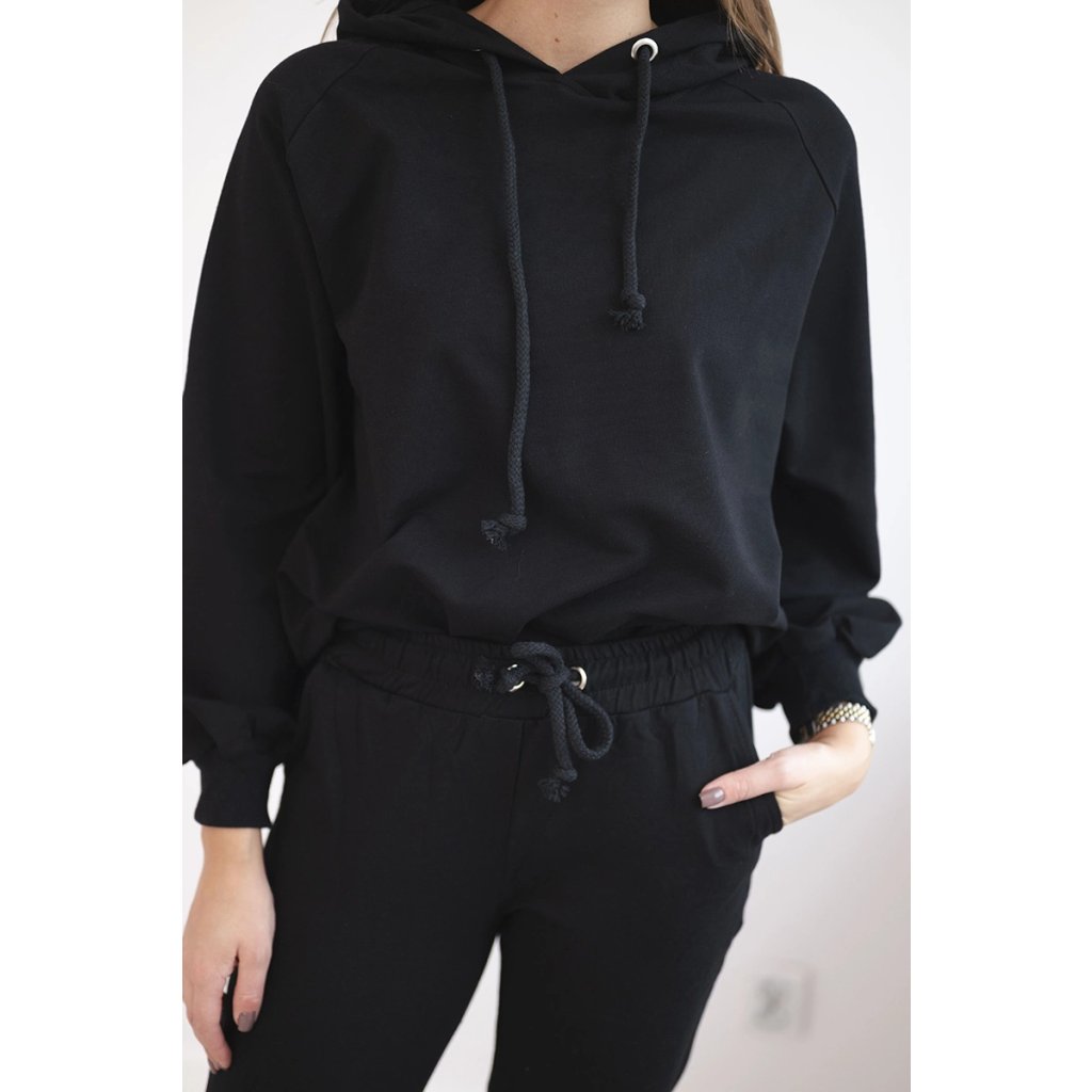 Představujeme vám sadu mikiny a kalhot. Mikina s kapucí bez potisků. Kalhoty s kapsami a zavazováním v pase. Sada je vyrobena z vysoce kvalitního materiálu.