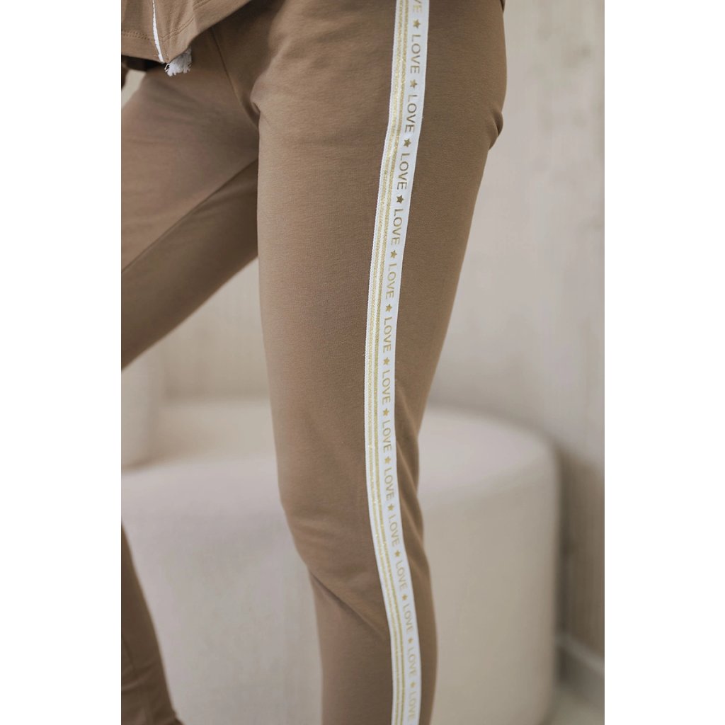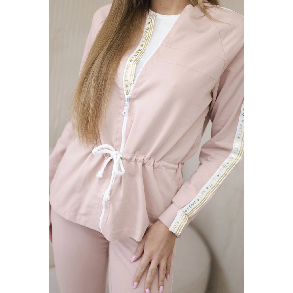 Pokud hledáte pohodlnou a zároveň módní soupravu na každý den, tento dámský teplákový komplet je ideální volbou. Skládá se z mikiny na zip a kalhot s elastickým pasem a šňůrkami, které zajišťují pohodlí po celý den. Stylové lampasy s nápisem „LOVE“ dodávají moderní vzhled a činí soupravu výjimečně ženskou. Mikina má praktické manžety a kalhoty se skvěle přizpůsobí postavě, zdůrazňujíce siluetu. Souprava je ideální na procházku, nákupy, výlet nebo relax doma. Vyrobeno z vysoce kvalitní bavlny s přídavkem elastanu, zajišťuje prodyšnost a volnost pohybu.