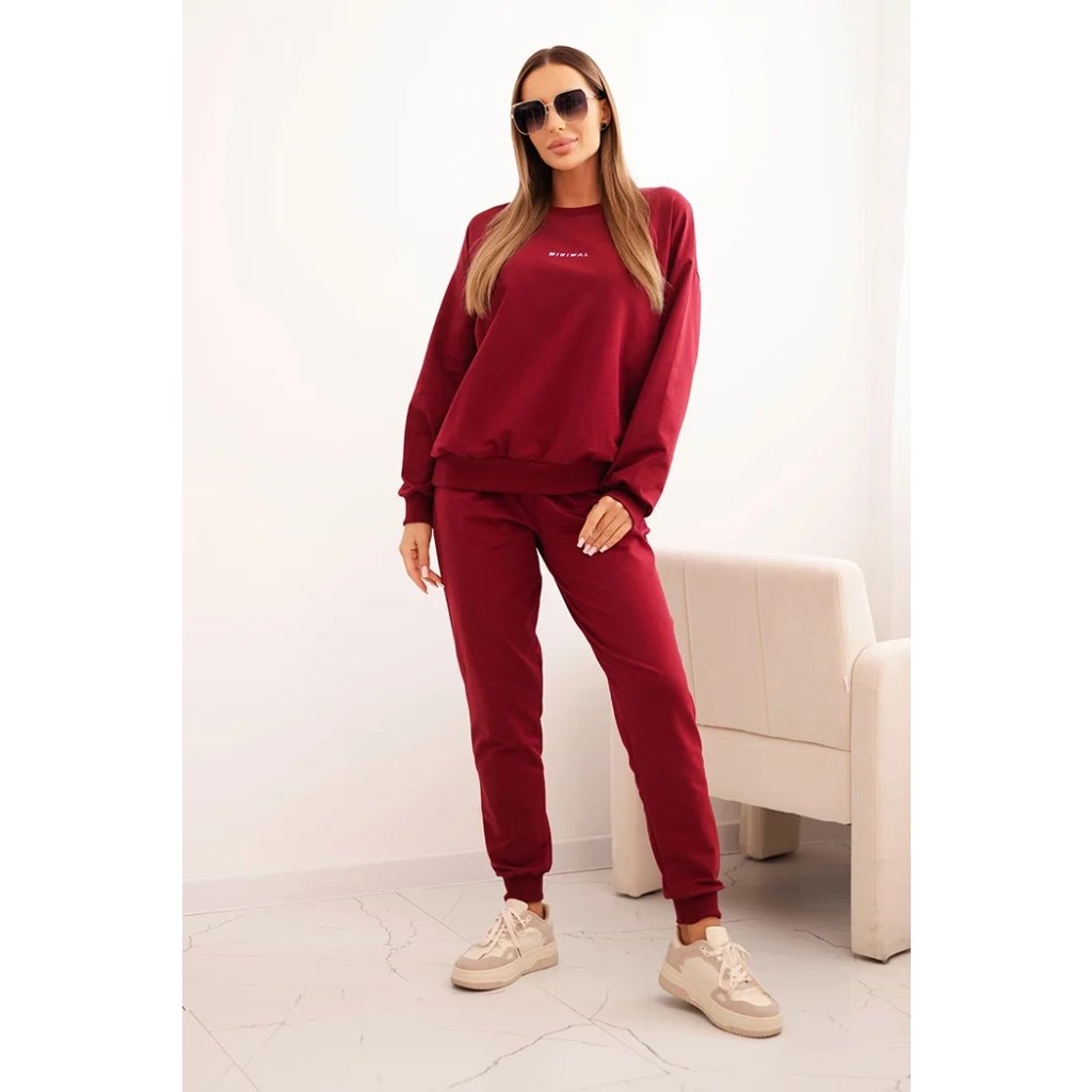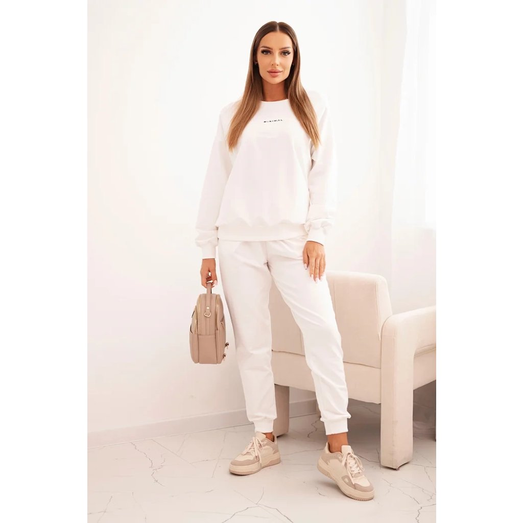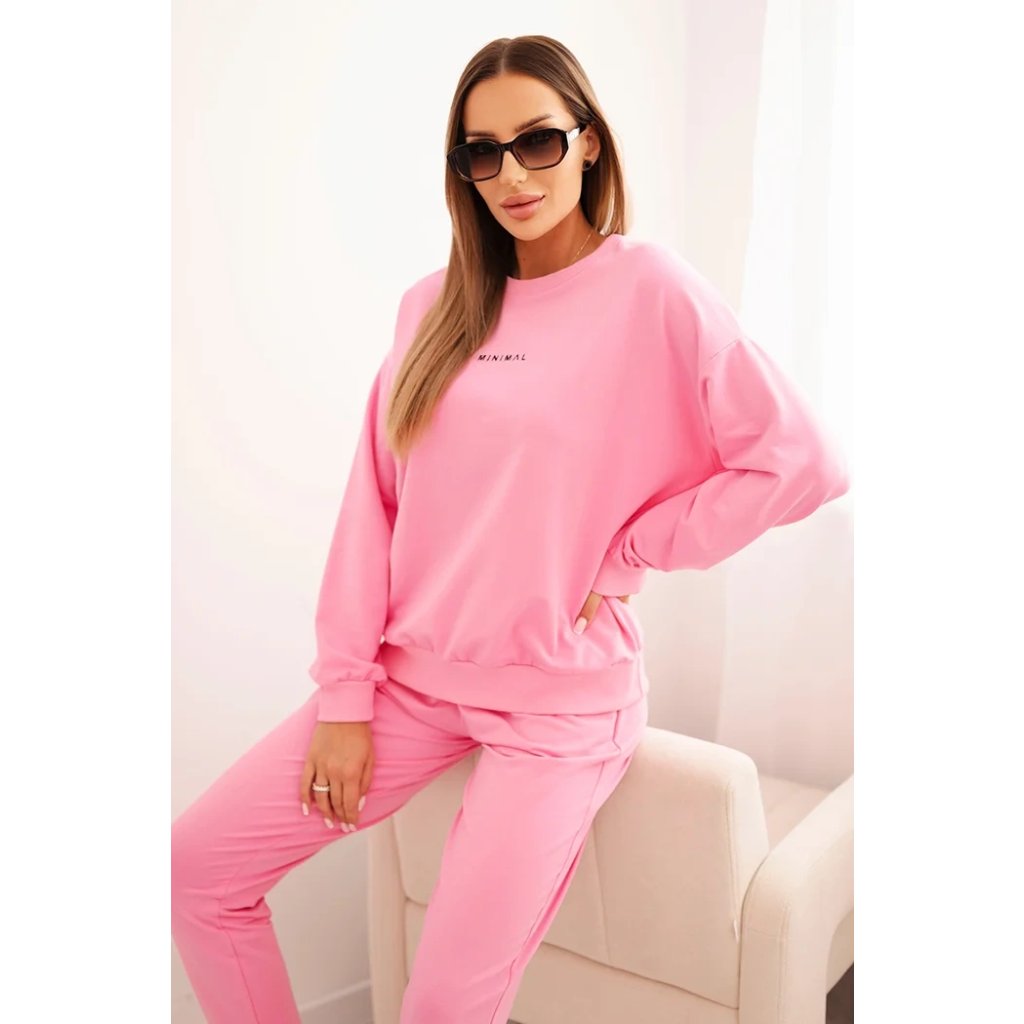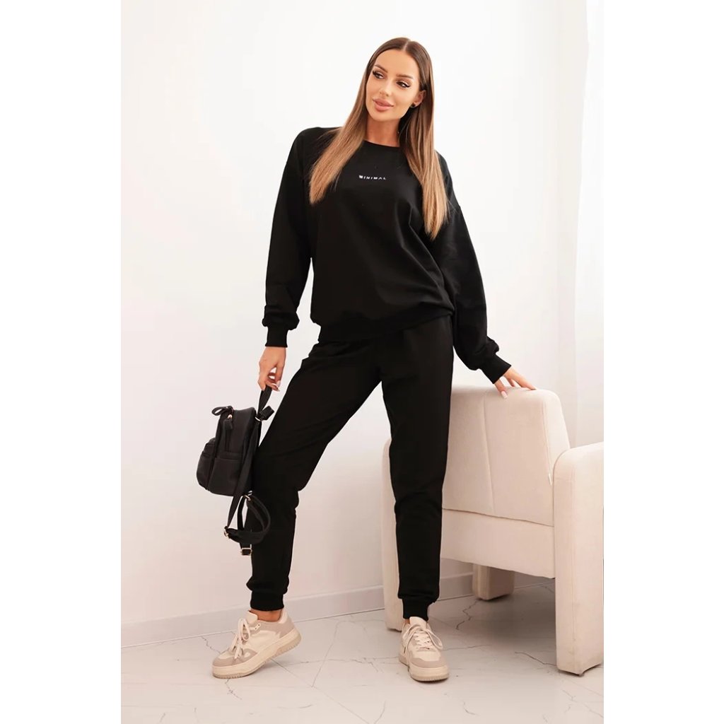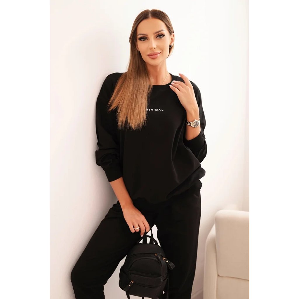 Vsadíte na komfort a nadčasový styl s dámským teplákovým setem s nápisem MINIMAL. Mikina volného střihu s kulatým výstřihem a dlouhým rukávem se skvěle hodí pro každodenní nošení, a kalhoty s elastickým pasem zajišťují pohodlí a volnost pohybu. Díky decentnímu designu bude tento set ideální jak na relaxaci doma, tak na procházku nebo nákupy.