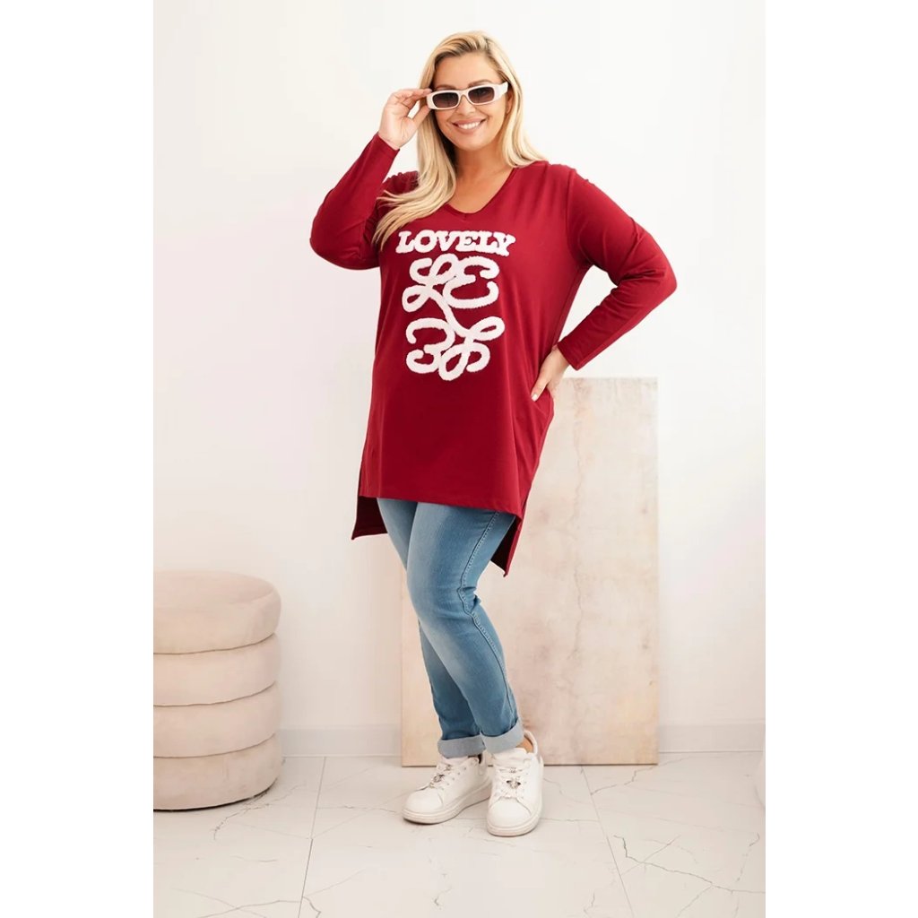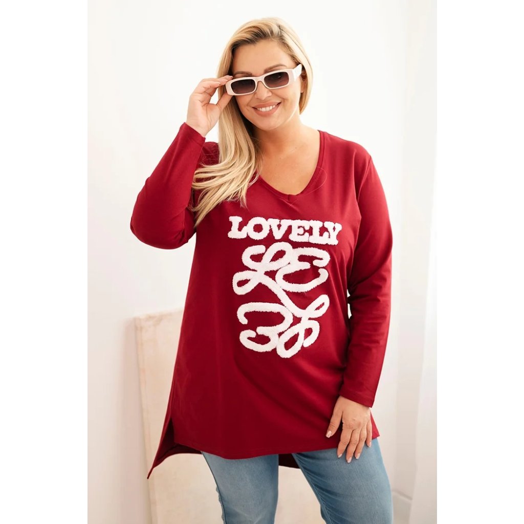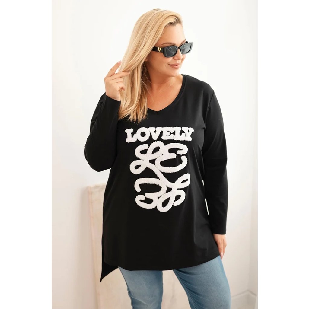 Dámská blůza Plus Size bavlněná s nápisem a výstřihem do V
