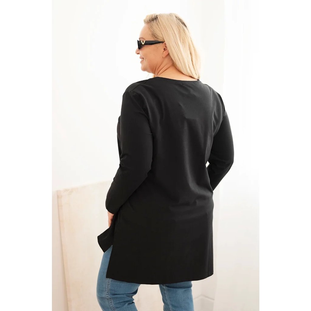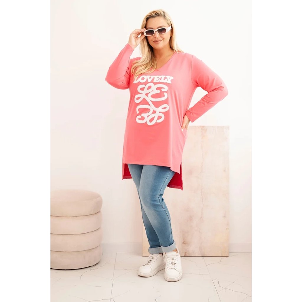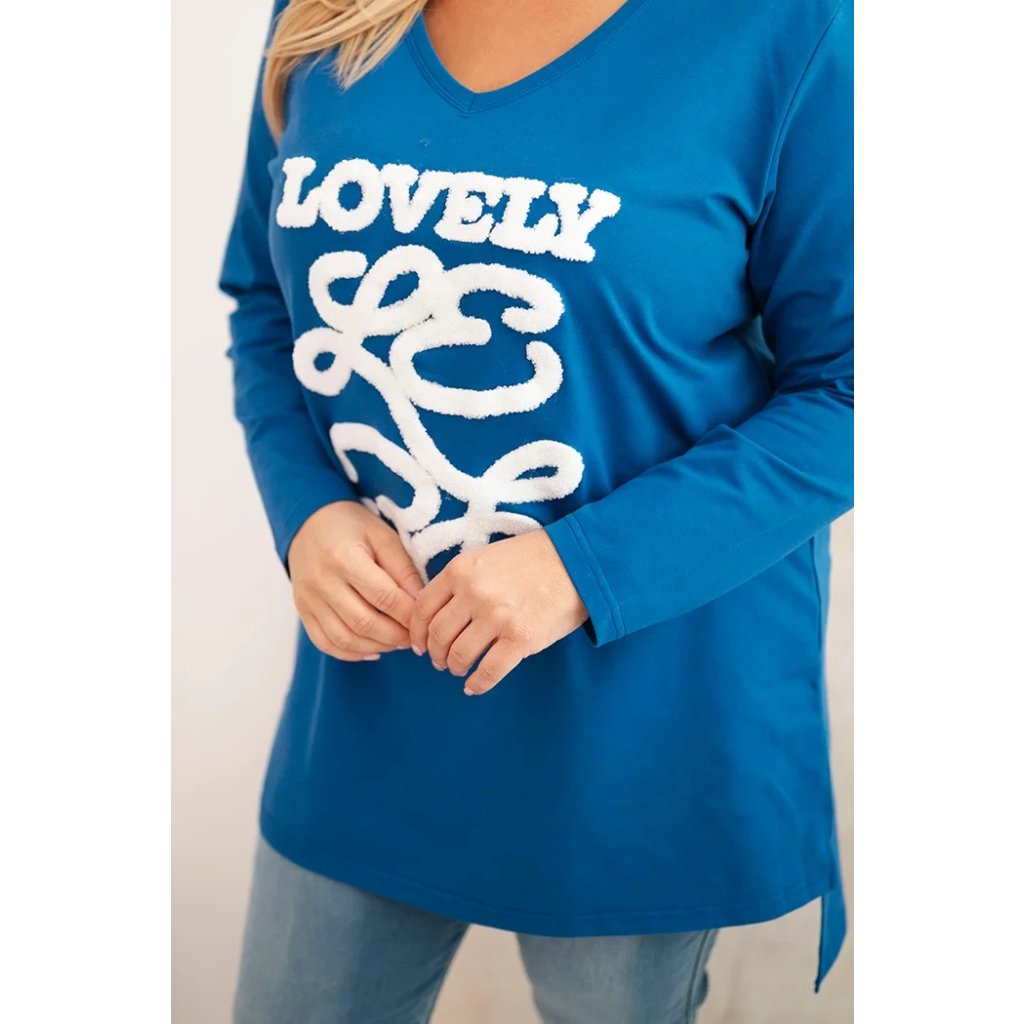 Dámská blůza Plus Size bavlněná s nápisem a výstřihem do V