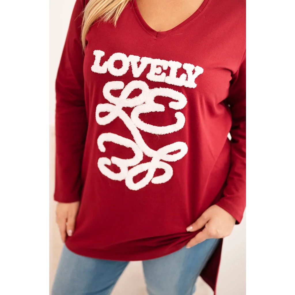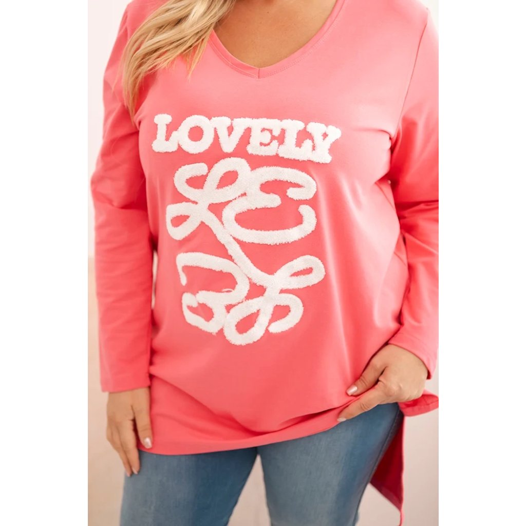 Dámská blůza Plus Size s nápisem "LOVELY" je vynikající volbou pro ženy, které si cení pohodlí a módního vzhledu na každý den. Vyznačuje se efektním potiskem z měkkého 3D materiálu a klasickým výstřihem ve tvaru písmene V, který opticky zeštíhluje krk.