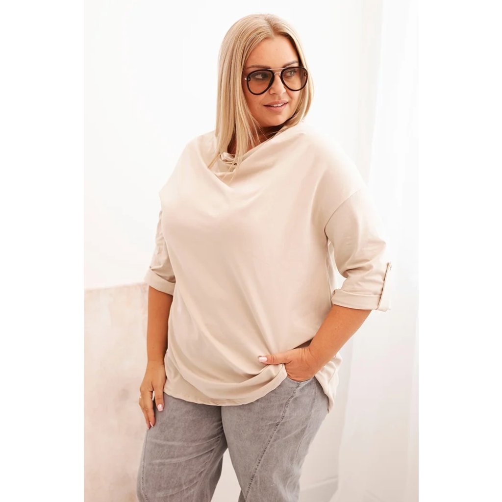 Dámská blůza Plus Size s bavlnou volného střihu s vodním výstřihem