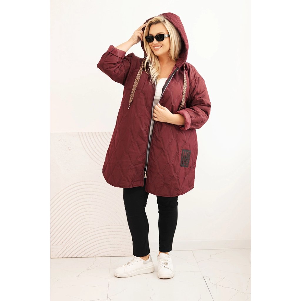 Stylová dámská prošívaná bunda ve velikosti plus size je vynikající volbou pro ženy nosící větší velikosti – od XL do 4XL. Její volný, oversized střih zajišťuje maximální komfort nošení a skvěle se přizpůsobuje postavě, neomezuje pohyb. Model se vyznačuje geometrickým prošíváním, které opticky zeštíhluje siluetu, a módní kapucí se stahovací šňůrkou v leopardím vzoru. Zip a praktická kapsa na prsou podtrhují moderní a funkční charakter bundy.
