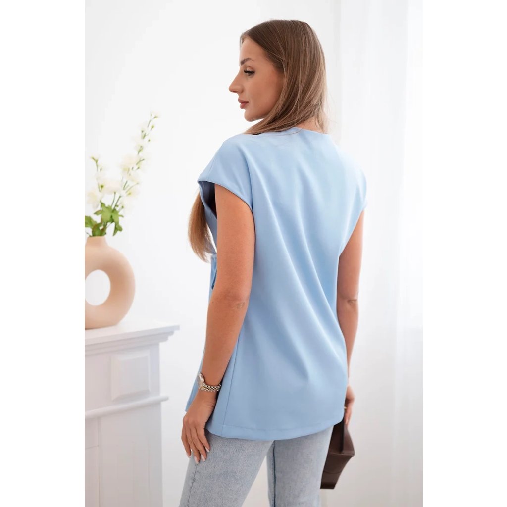Dámská bunda bez rukávů s kravatou – elegantní střih modrý