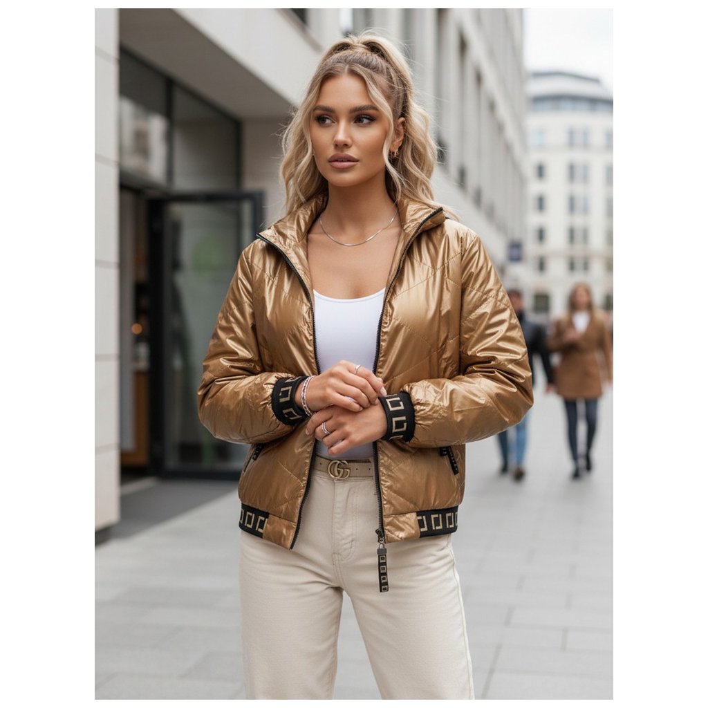 Stylová dámská bomber bunda, která kombinuje pohodlí s módním designem. Prošívaná struktura a výplň poskytují lehkost a teplo. Dekorativní manžety zdůrazňují sportovní charakter. Zapínání na zip, bez kapuce a se dvěma ozdobnými kapsami. Ideální na jaro.