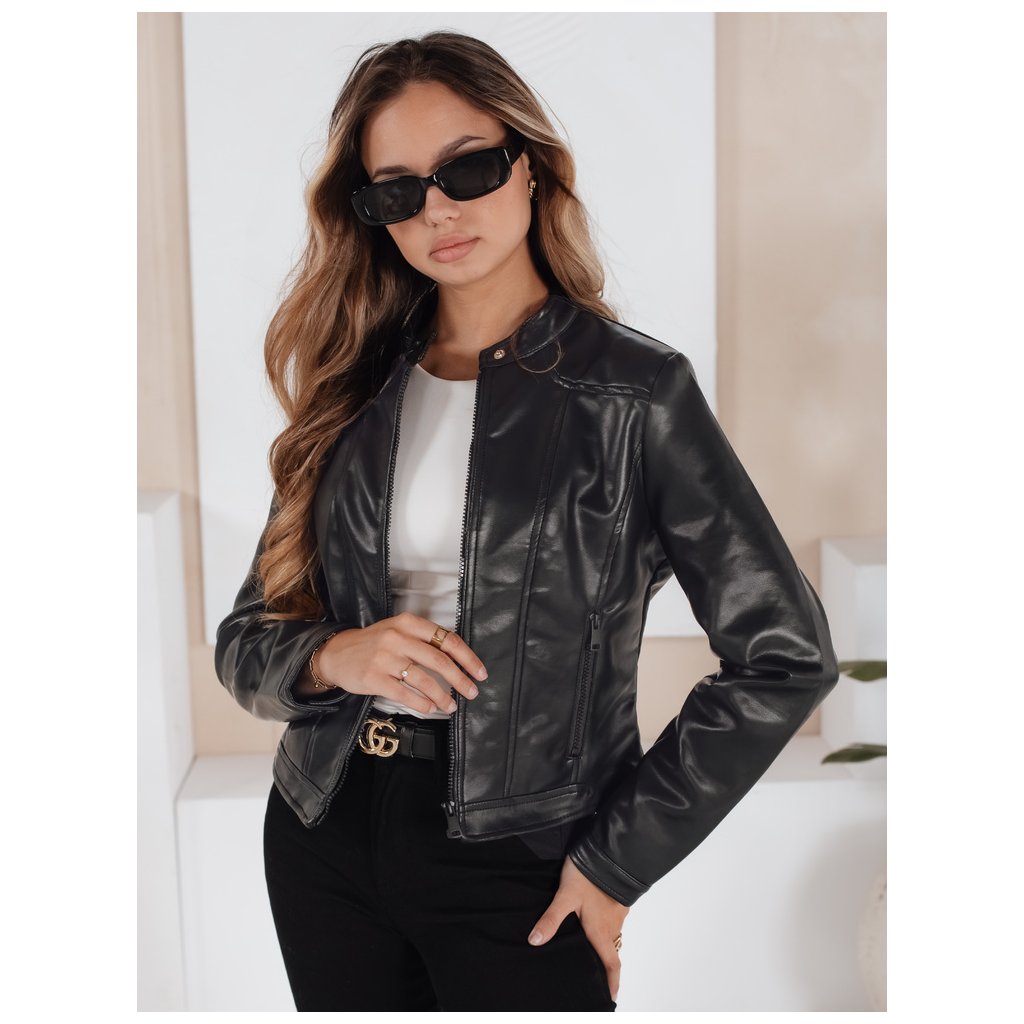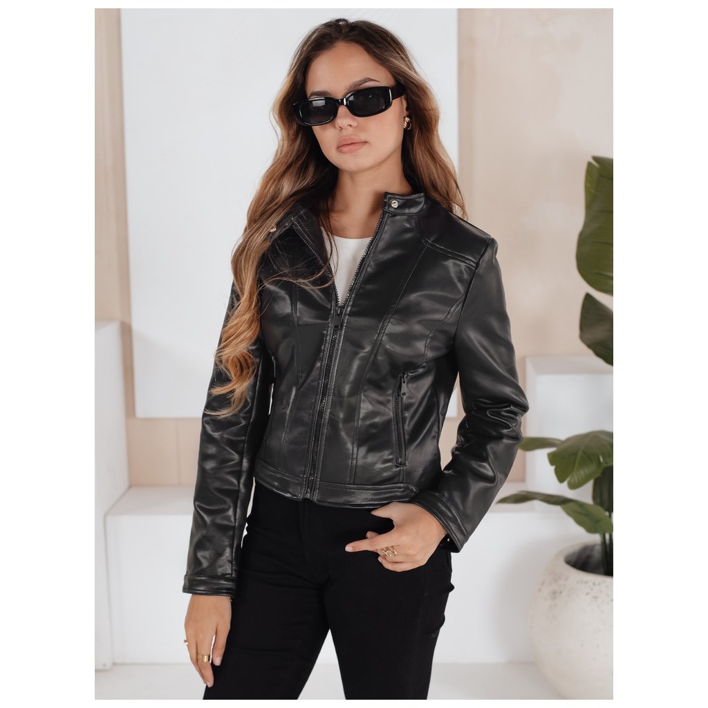 Tato stylová dámská přechodná bunda vyrobená z vysoce kvalitní ekokůže je volbou pro milovnice nadčasové klasiky. Přiléhavý střih zdůrazňuje siluetu a stojáček s patentním zapínáním dodává elegantní nádech. Má praktické kapsy na zip a podšívku pro pohodlí v chladnějších dnech.