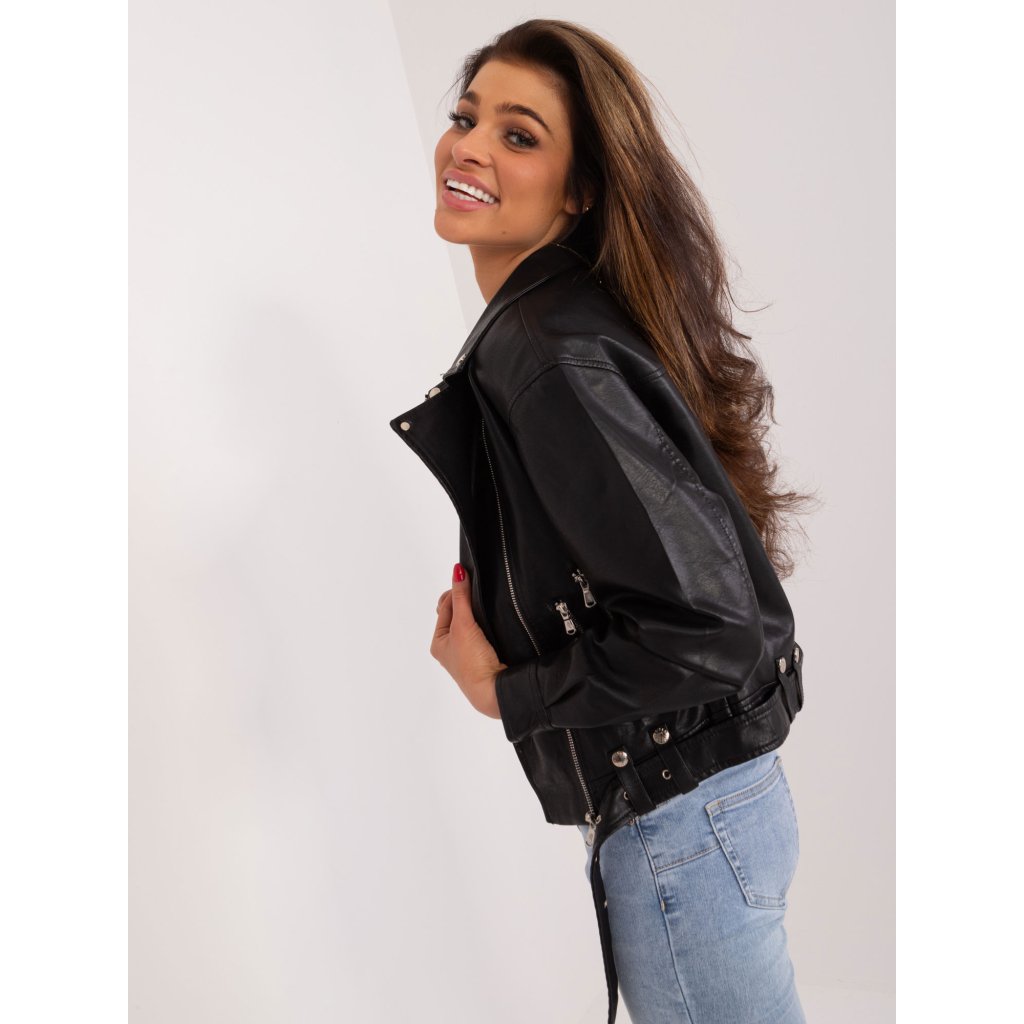 Dámská koženková bunda s páskemSložení 55% polyuretan, 45% viskóza
