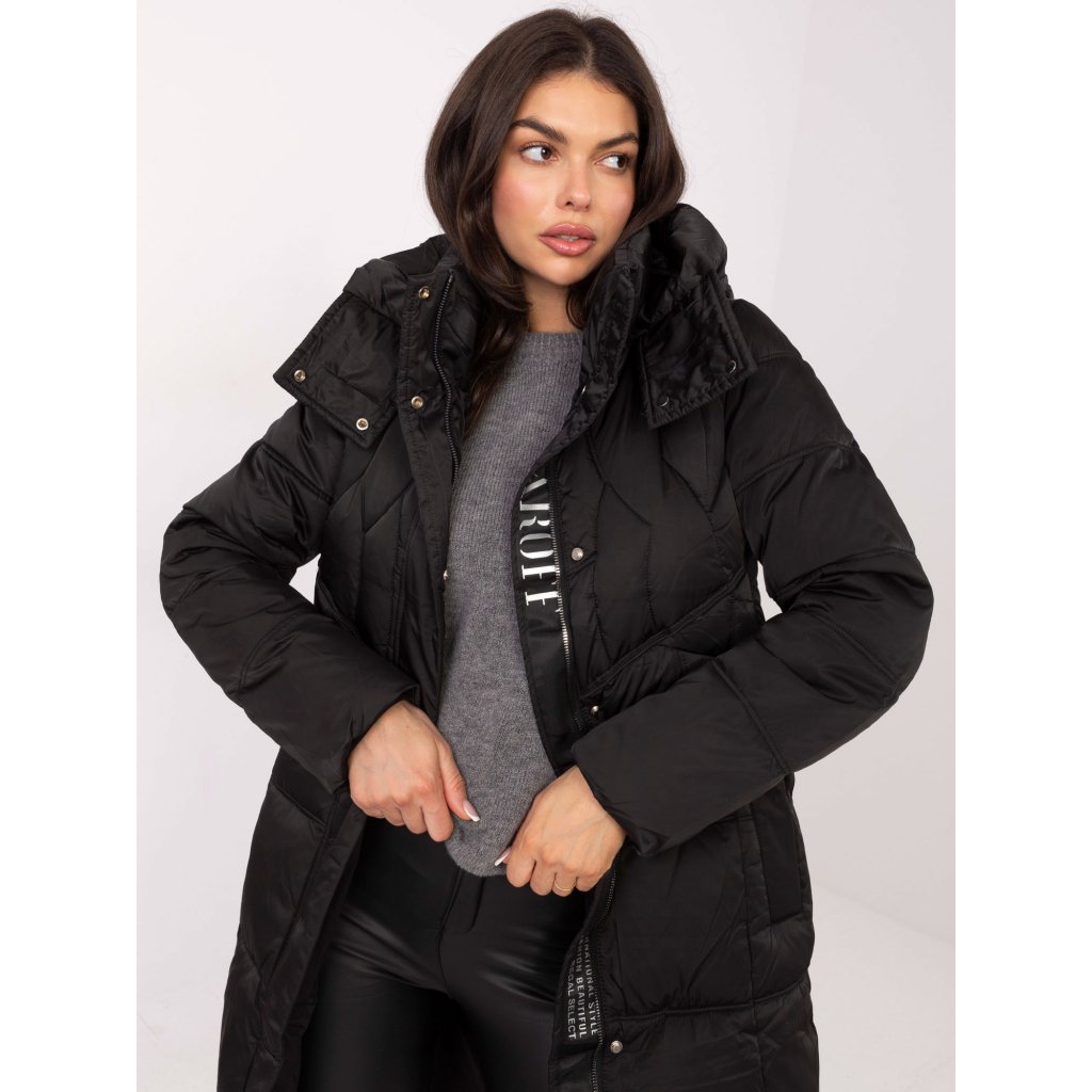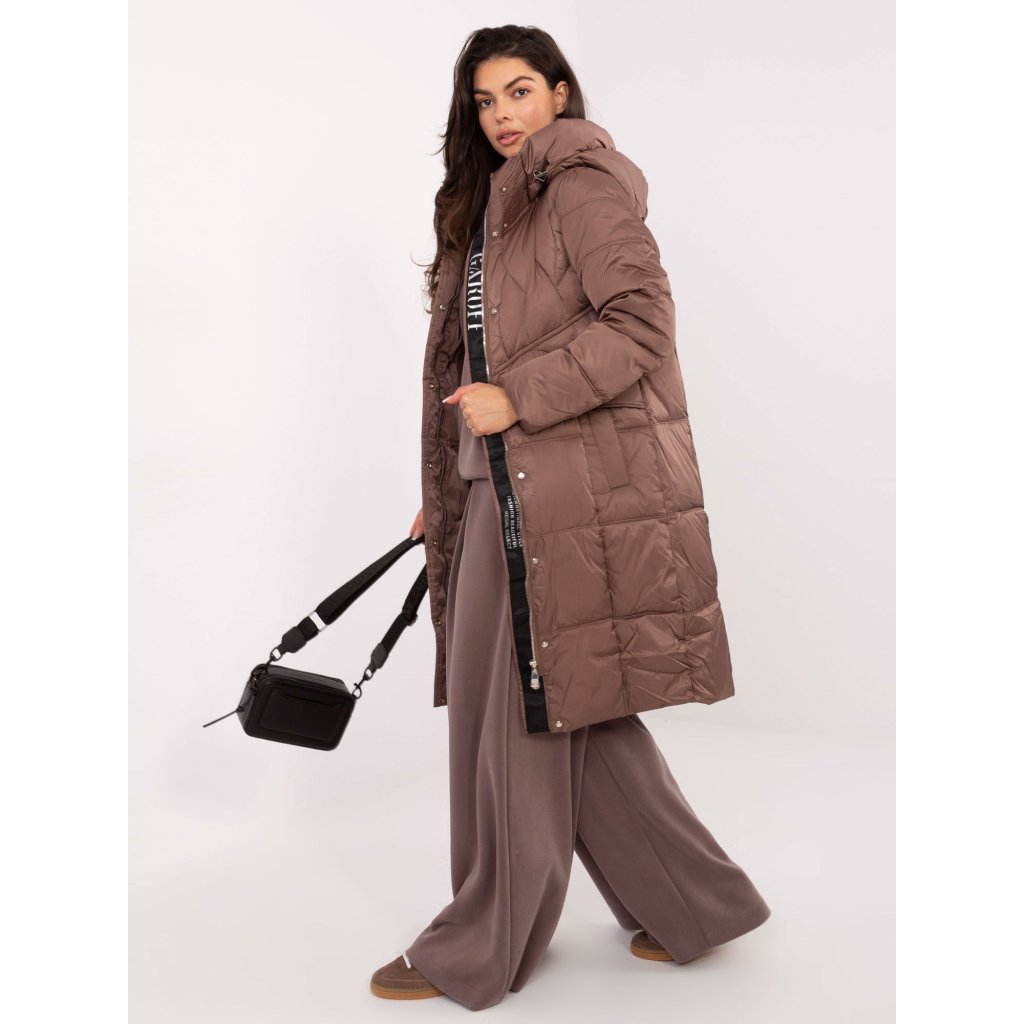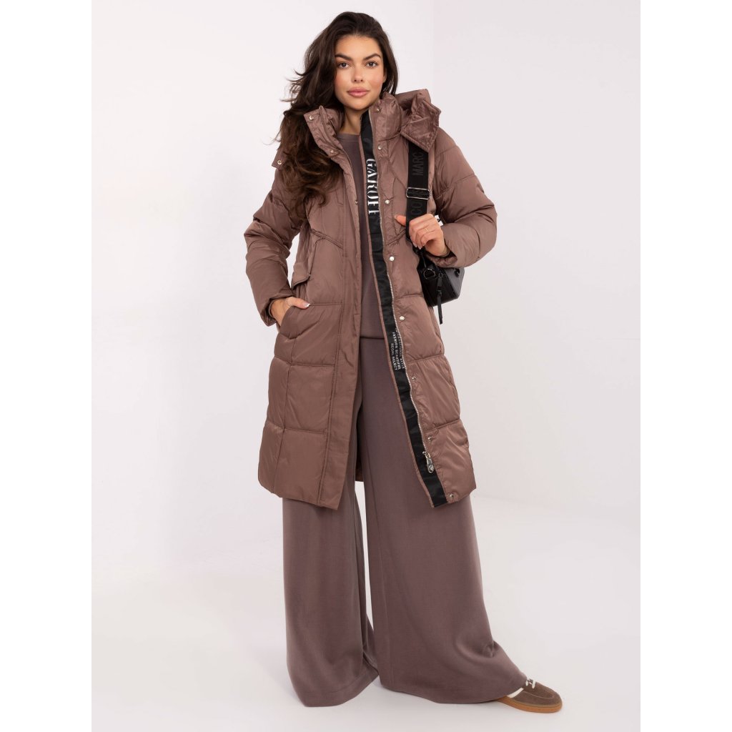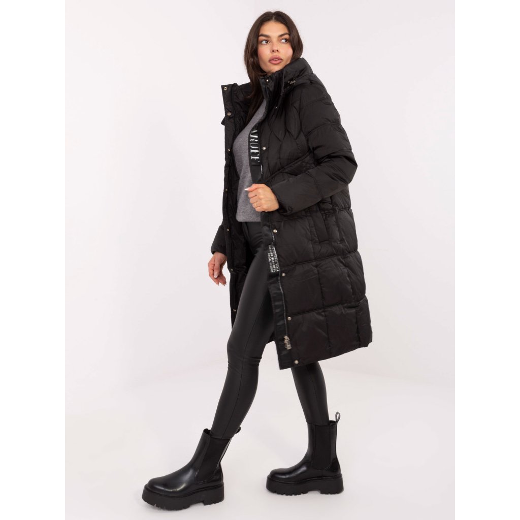 Dámská dlouhá bunda s kapucíPřevládající vzor: jednobarevný