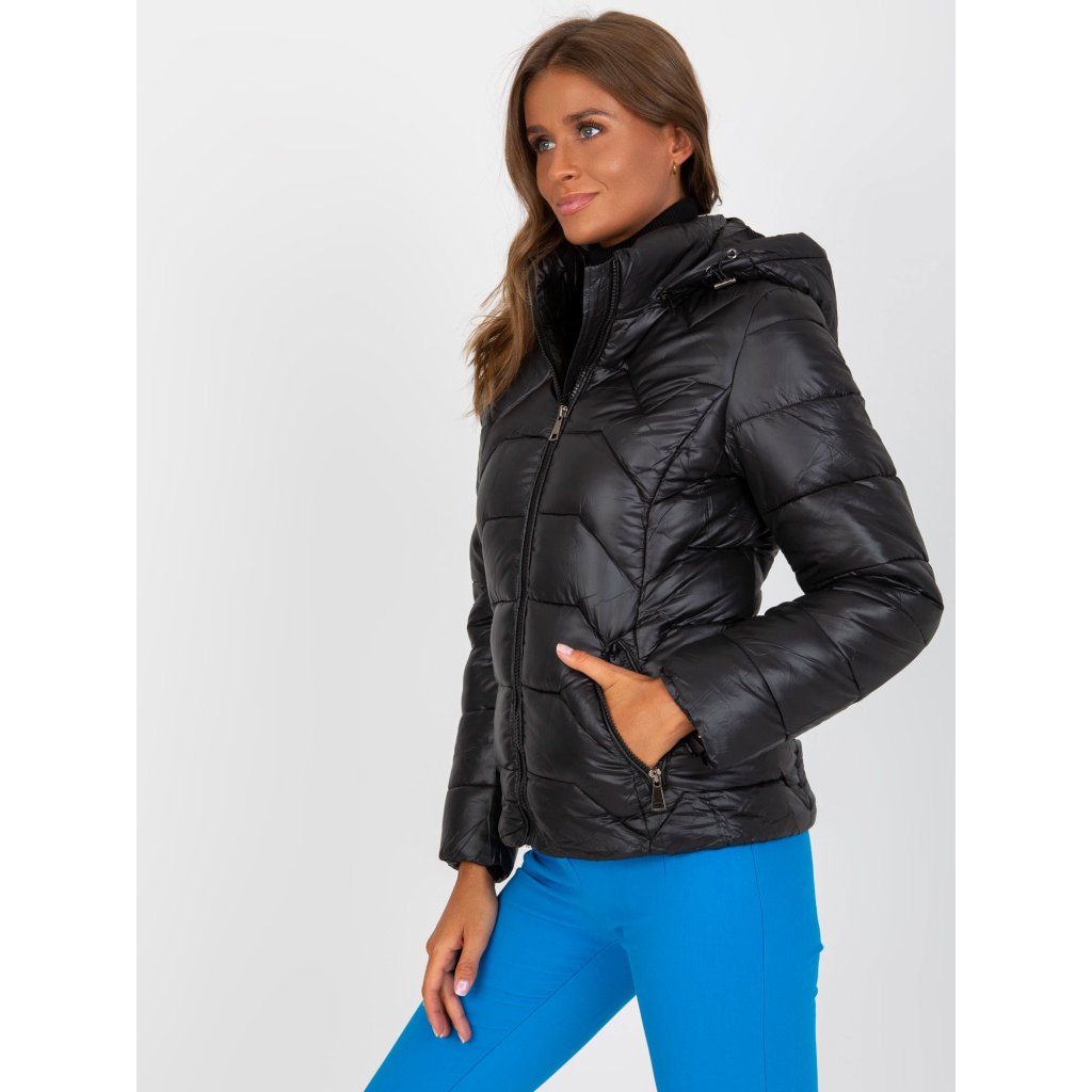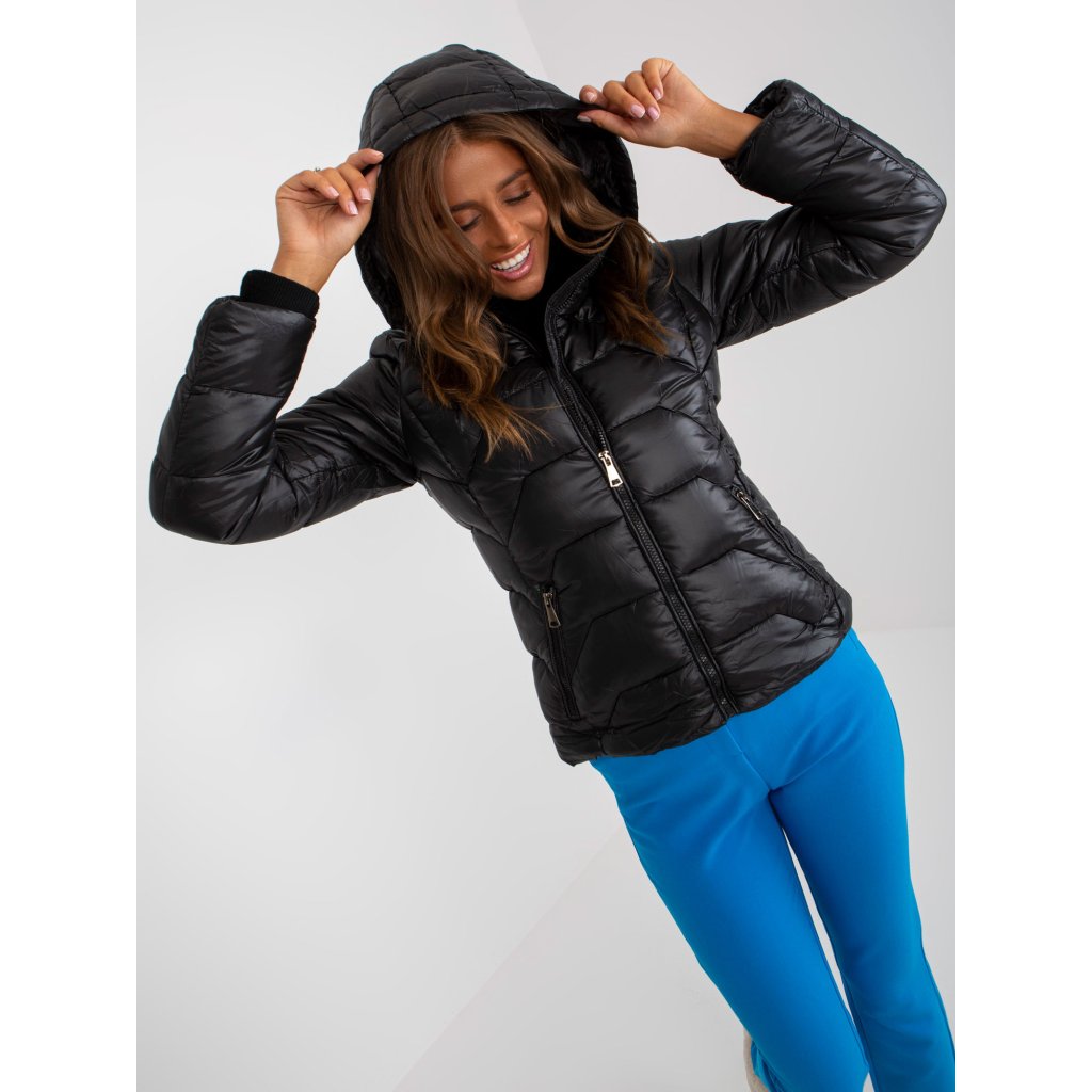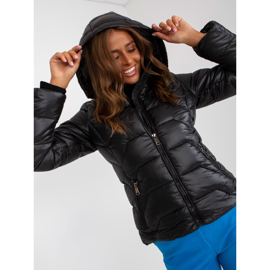 Černá prošívaná bunda pro volný čas s kapucí.