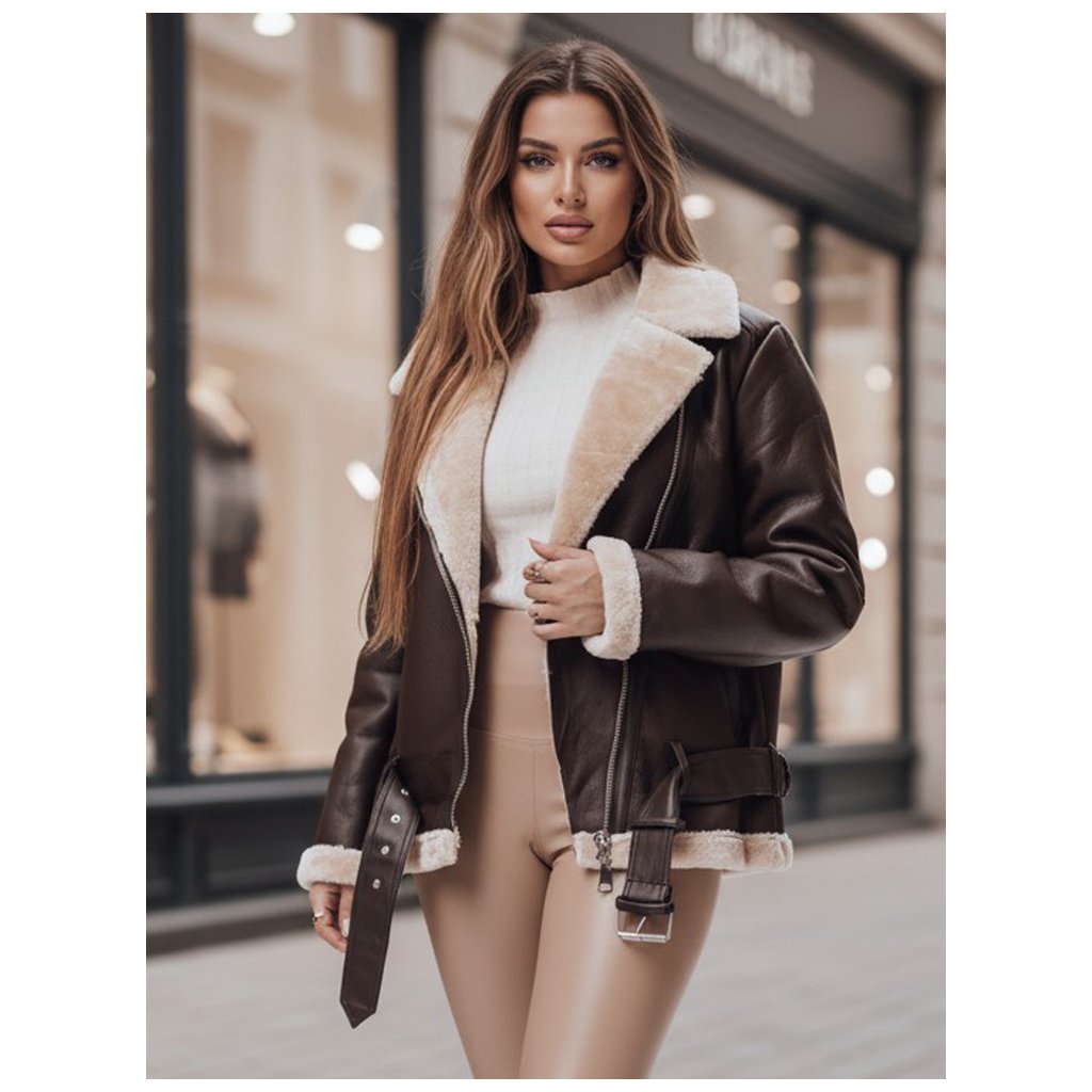 Tato stylová dámská kožená bunda s podšívkou z ovčí kůže je perfektní volbou pro chladnější dny. Vyrobena z vysoce kvalitních materiálů, poskytuje teplo a pohodlí a zároveň dodává eleganci každému outfitu. Klasická kombinace kožené textury a měkké ovčí kůže z ní dělá všestranný základní kousek šatníku, ideální jak pro každodenní nošení, tak pro formálnější příležitosti.
