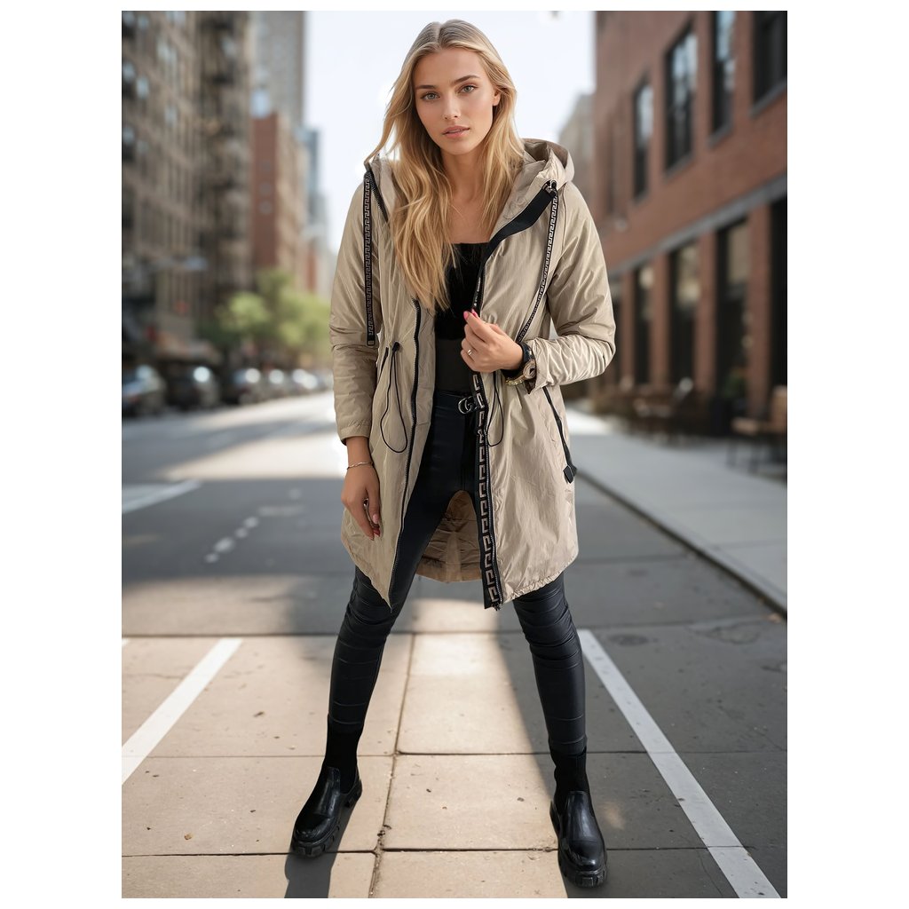HIT jarní sezóny. Parka VERONI v nejmódnějších barvách. Model s delším střihem do půli stehen. Zapínání na zip. V pase má lem. Nápadná kapuce ochrání před nepřízní počasí. Bunda má četné ozdobné pruhy s aztéckým vzorem, které dodávají moderní vzhled. Model bude ideální pro chladné večery.