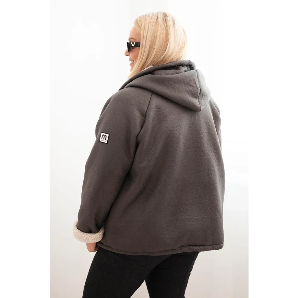 Zateplená dámská bunda plus size s měkkým beránkem uvnitř je vynikající volbou na chladnější dny. Model s praktickou kapucí, zapínaný na zip, spojuje pohodlí, teplo a módní vzhled. Díky volnému střihu poskytuje svobodu pohybu a jemné zakončení kožešinou na rukávech jí dodává útulný charakter.