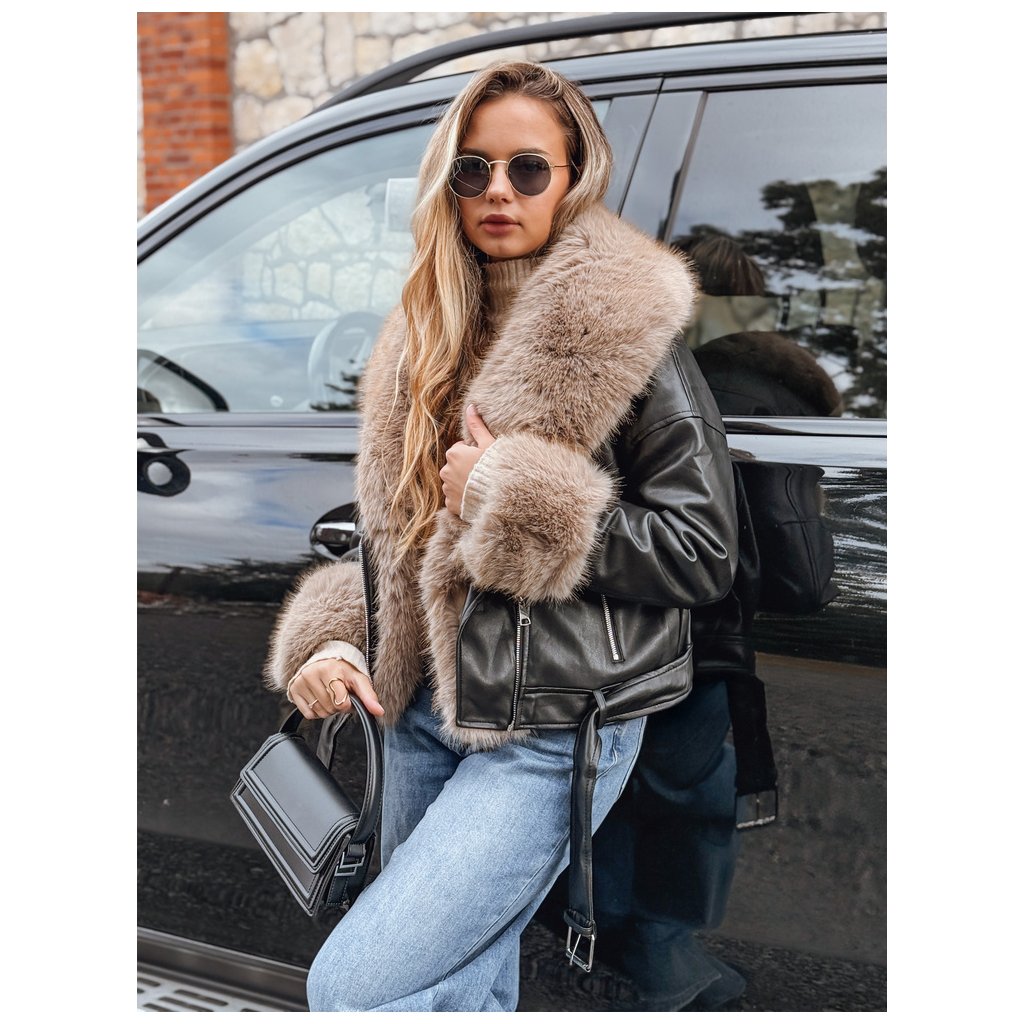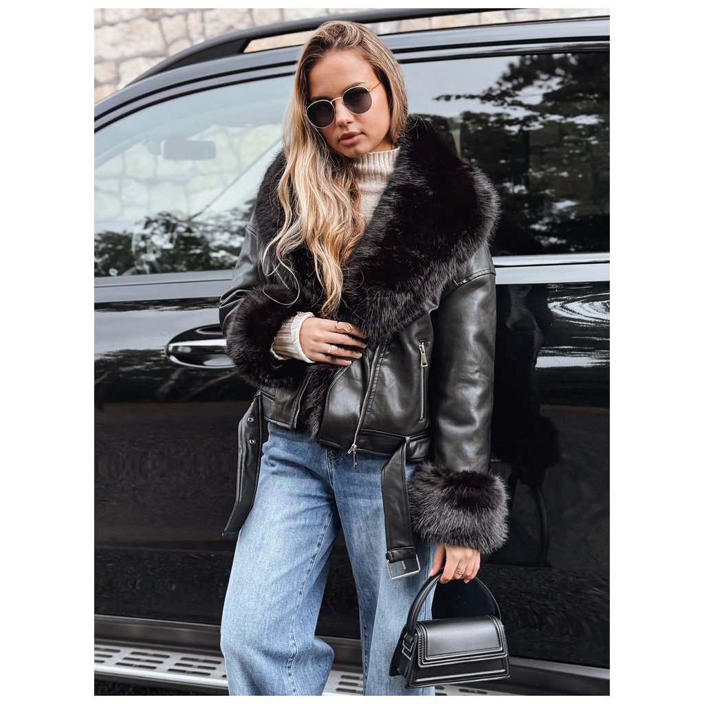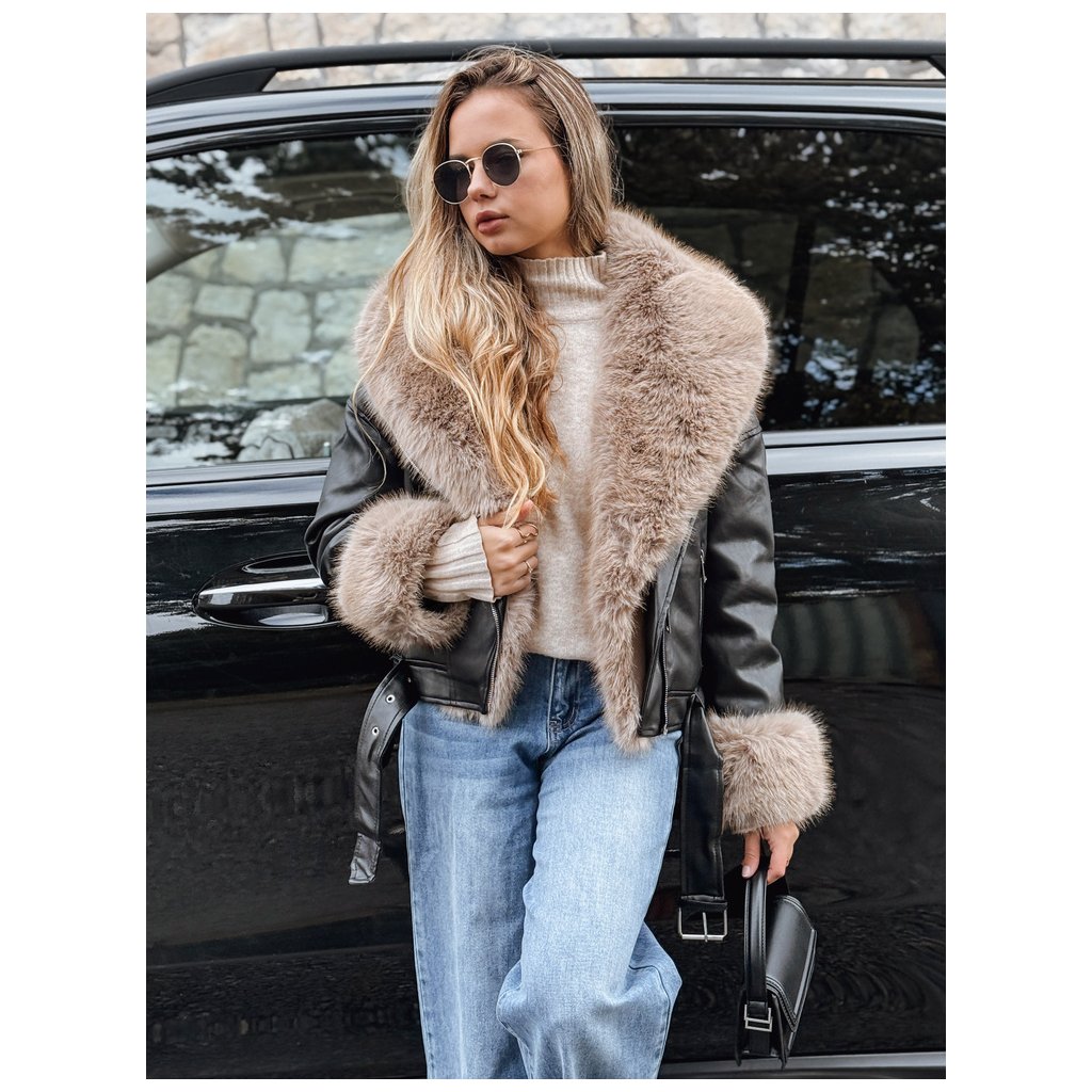 Dámská motorkářská bunda s kožešinovým lemem TY5233 Černá