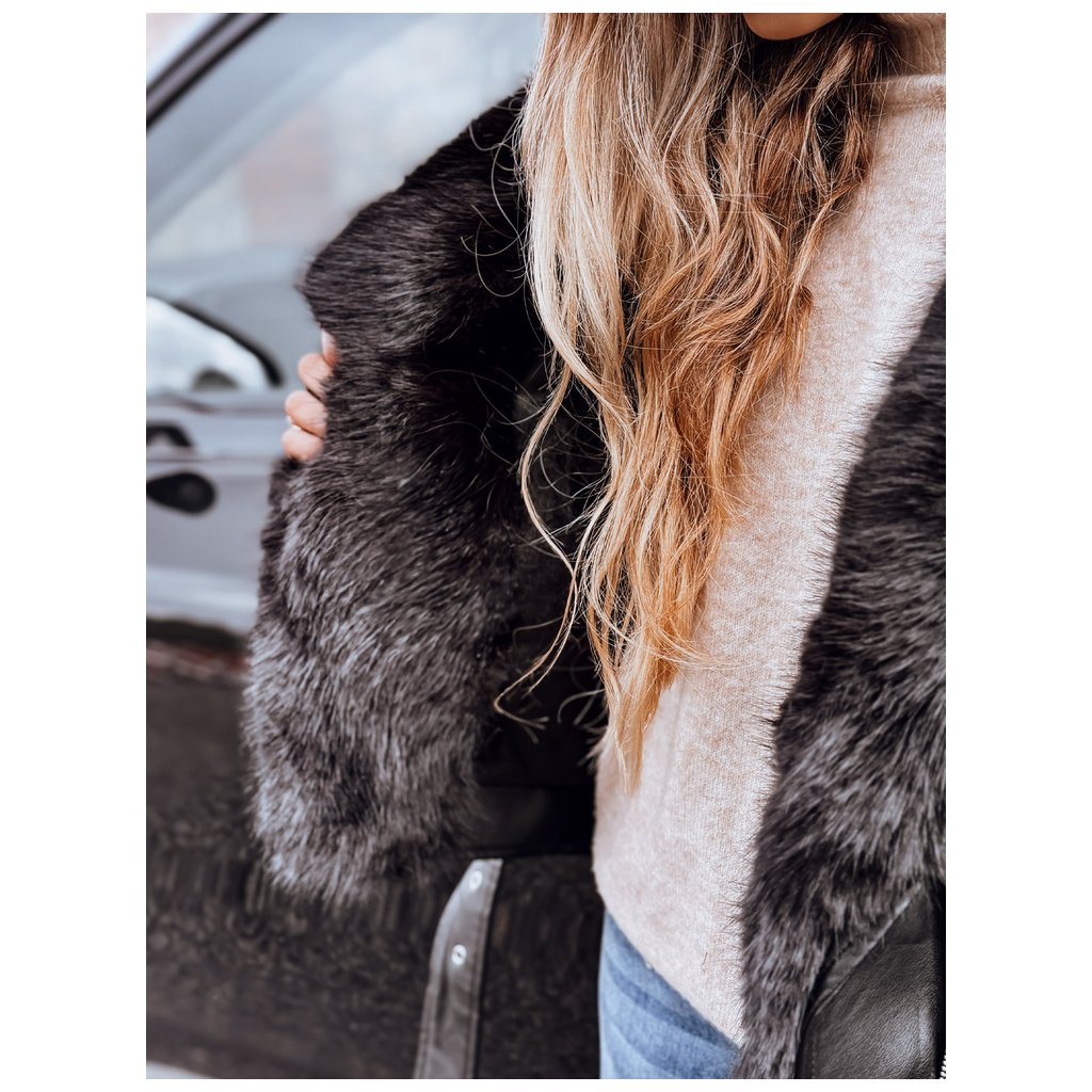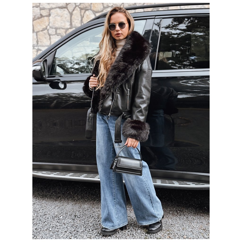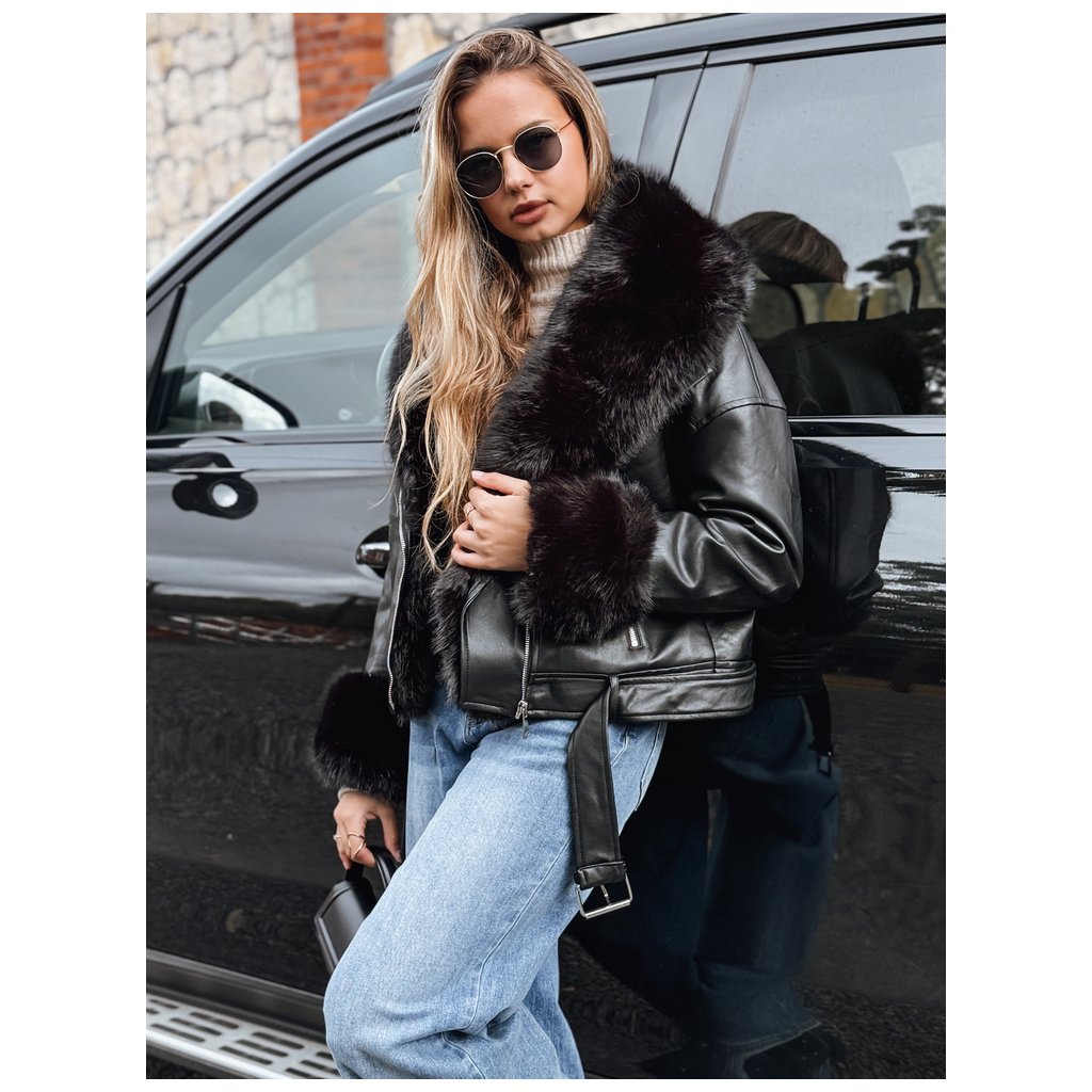 Dámská motorkářská bunda s kožešinovým lemem TY5233 Černá
