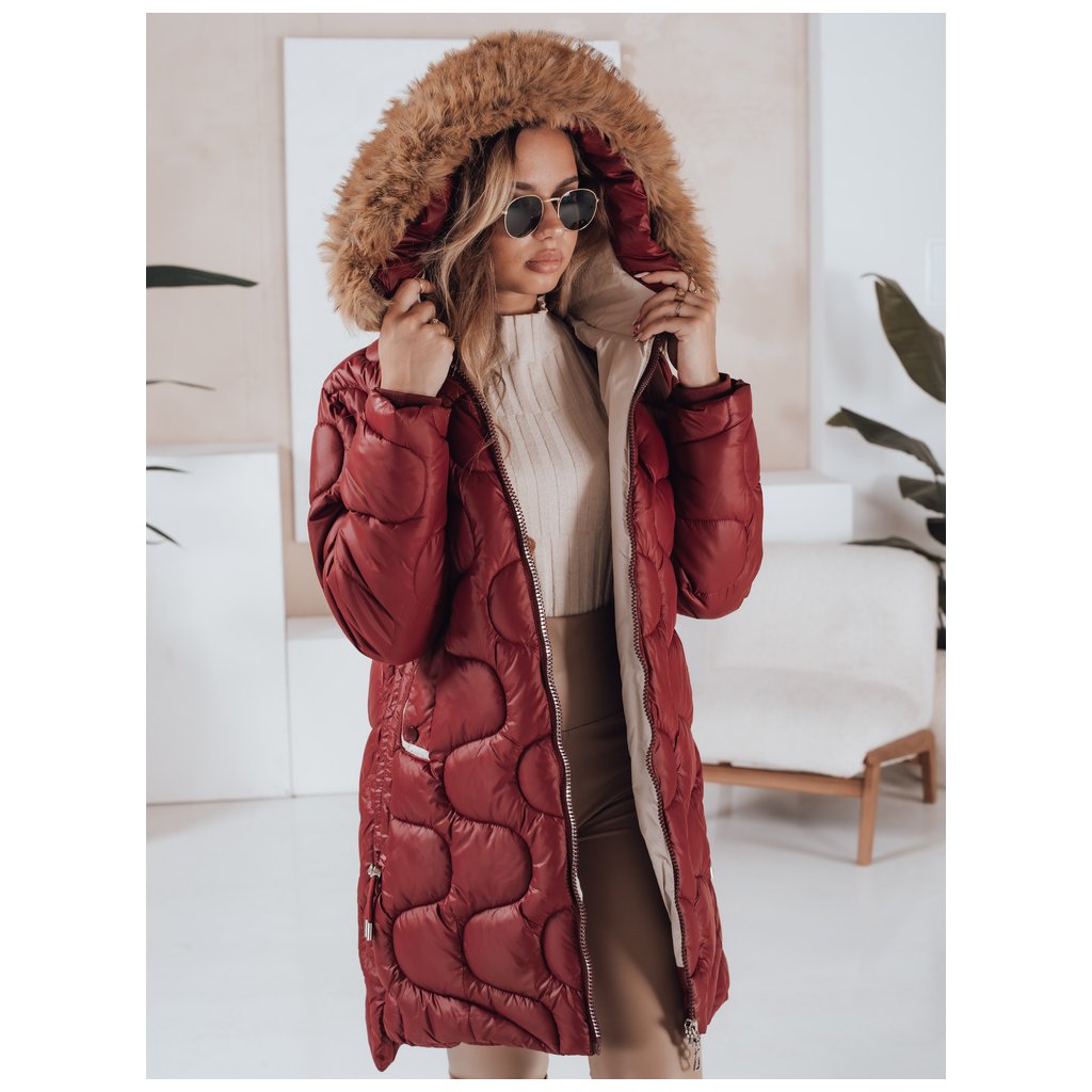 Tato teplá prošívaná bunda s velkou kapucí lemovanou umělou kožešinou je nezbytností pro zimní období. Její lehce přiléhavý střih má ozdobné prošívání a dvojitý zip pro lepší padnutí. Je ideální jak na procházku, tak na zimní nákupy ve městě. Chrání před větrem a mrazem.