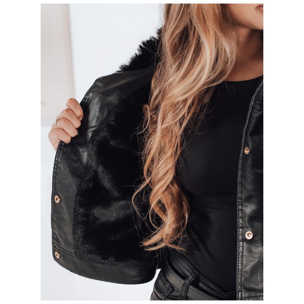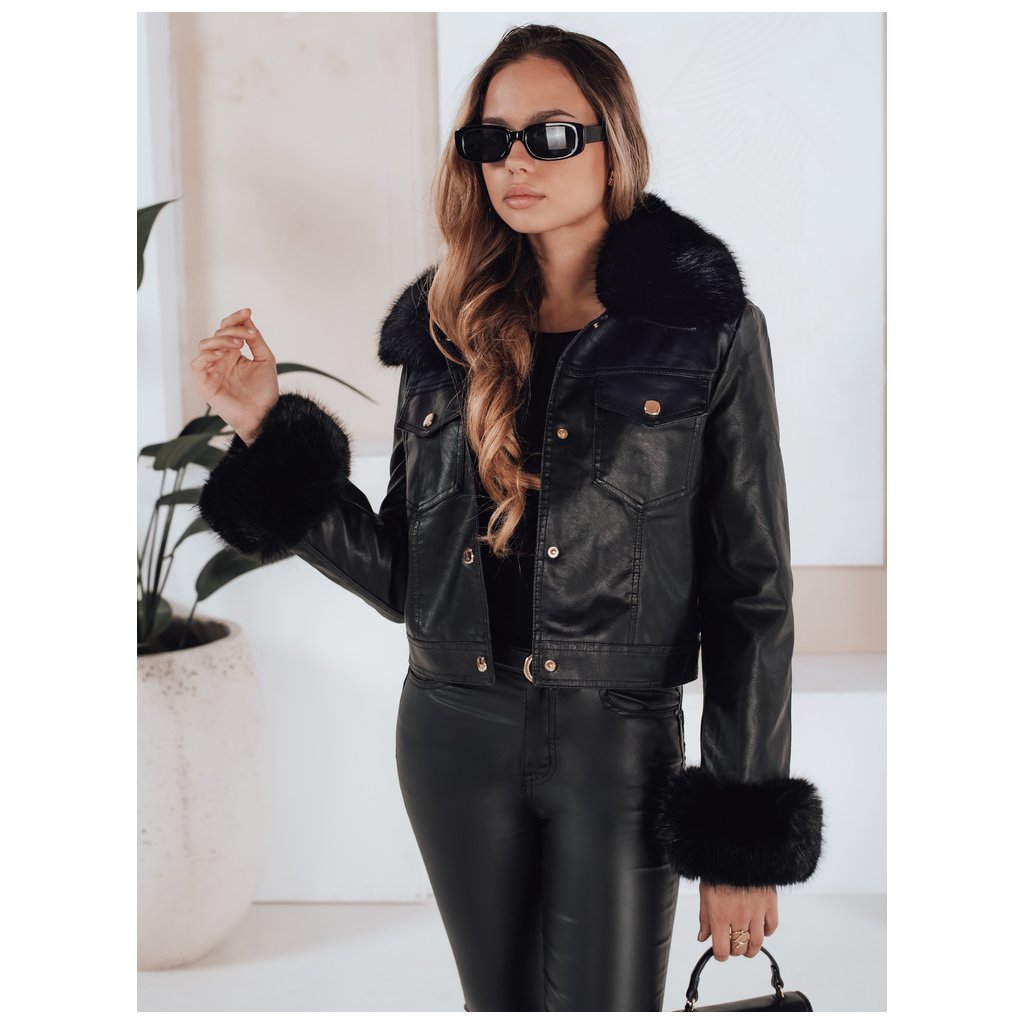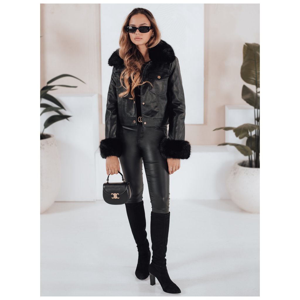 Tato dámská kožená bunda s ozdobnou kožešinou je volbou pro ženy, které si cení stylu a pohodlí v jednom. Krátký střih dokonale zdůrazňuje pas, zatímco výrazný lem na límci a manžetách přitahuje pozornost. Ideální pro každodenní i večerní outfity.