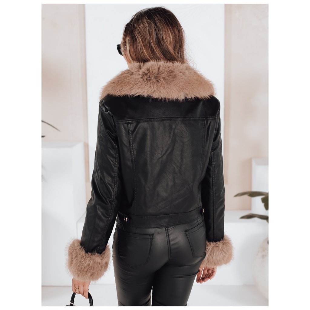 Dámská kožená bunda s kožešinou, velbloudí TY5139