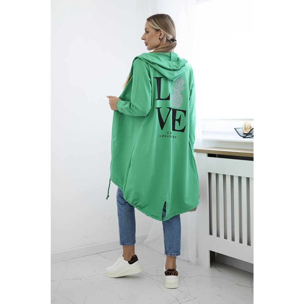 Představujeme vám přehoz s kapucí. Žíhaná s kapsami a potiskem. Ideální pro každou siluetu. Bunda je vyrobena z vysoce kvalitního materiálu. Velikost je univerzální a vyhovuje dámám ve velikostech M a L, XL.
