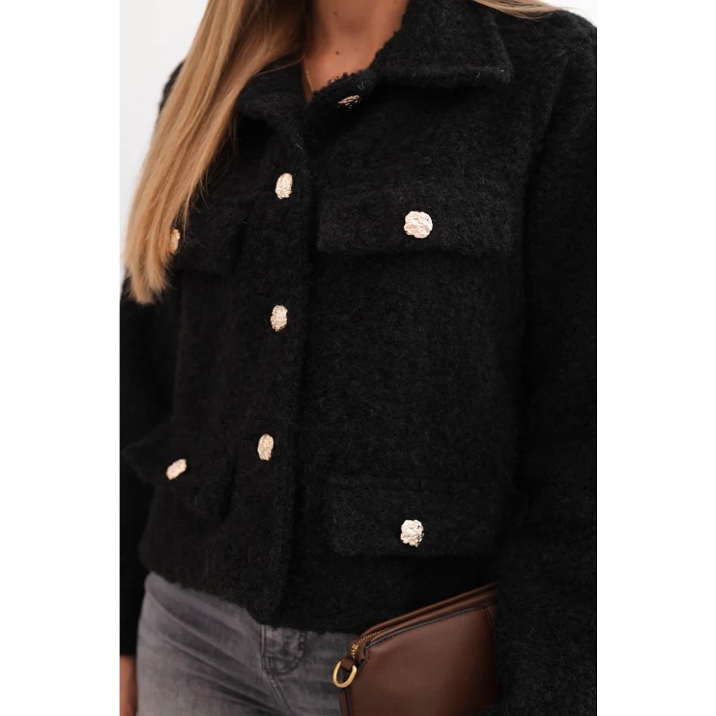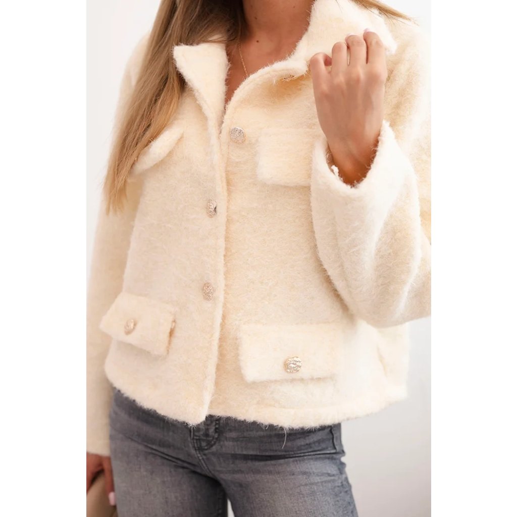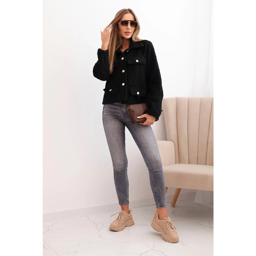 Dámská bunda s vlnou s nadýchanou strukturou a ozdobnými knoflíky
