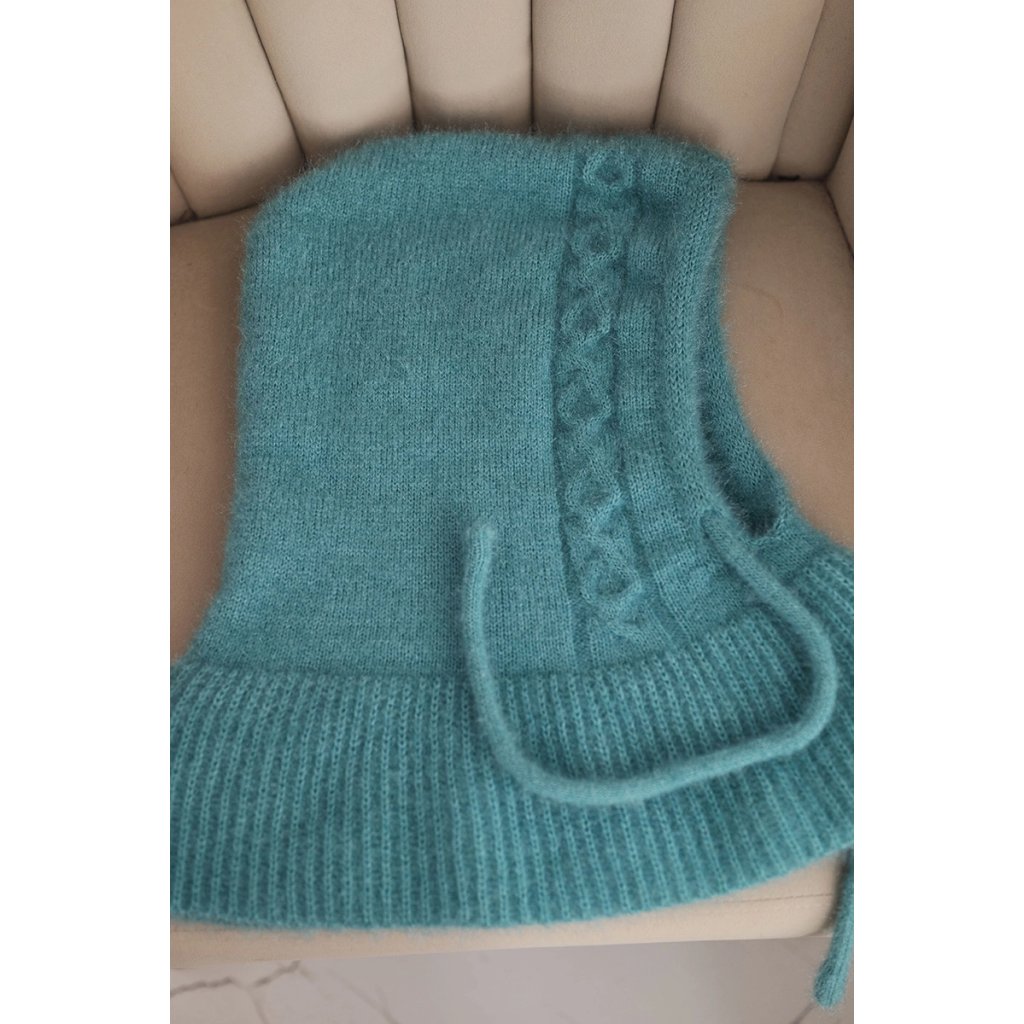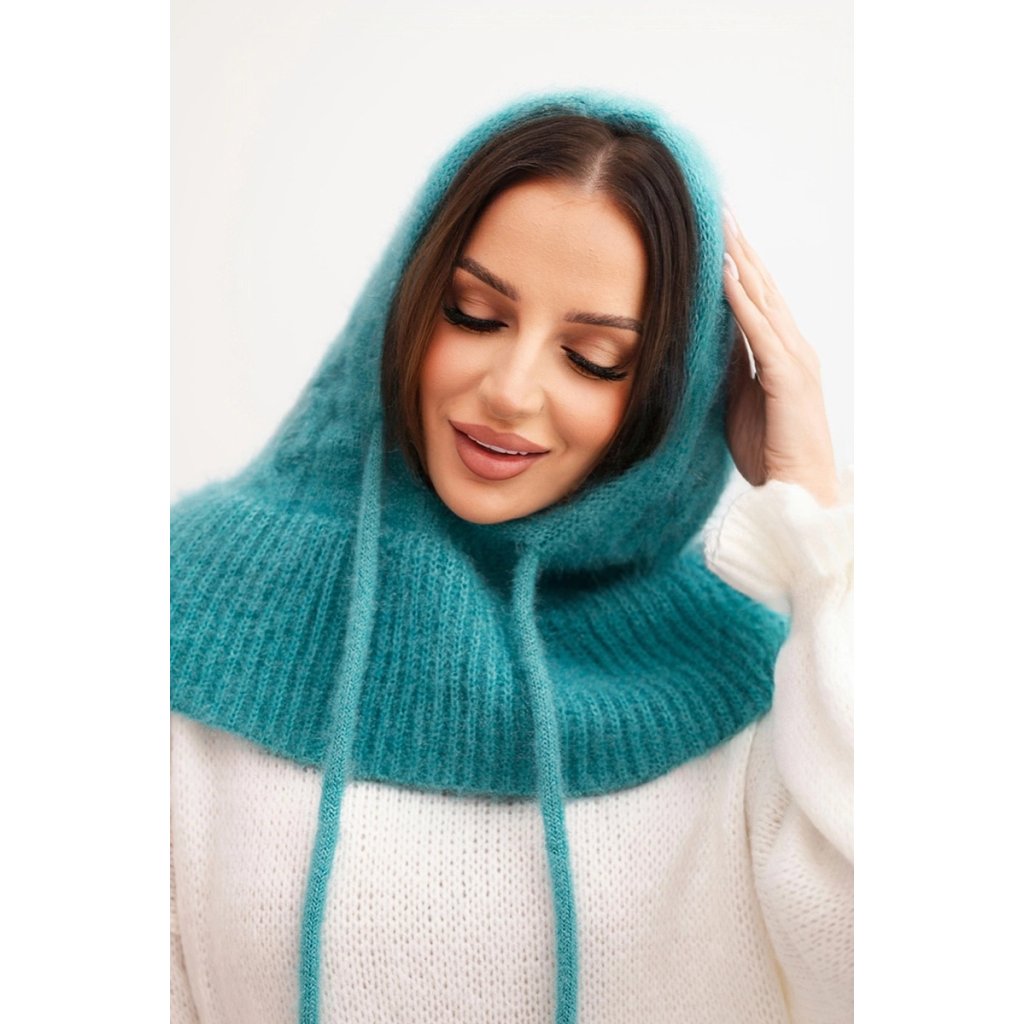 Dámská čepice s kapucí, šněrováním a copánkovým vzorem