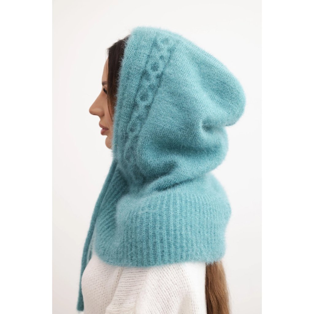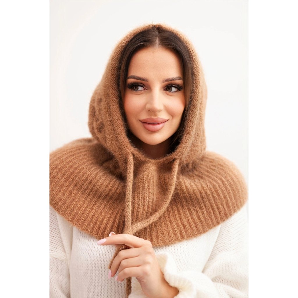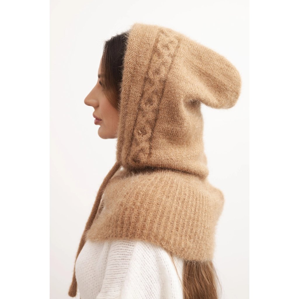 Dámská čepice s kapucí, šněrováním a copánkovým vzorem