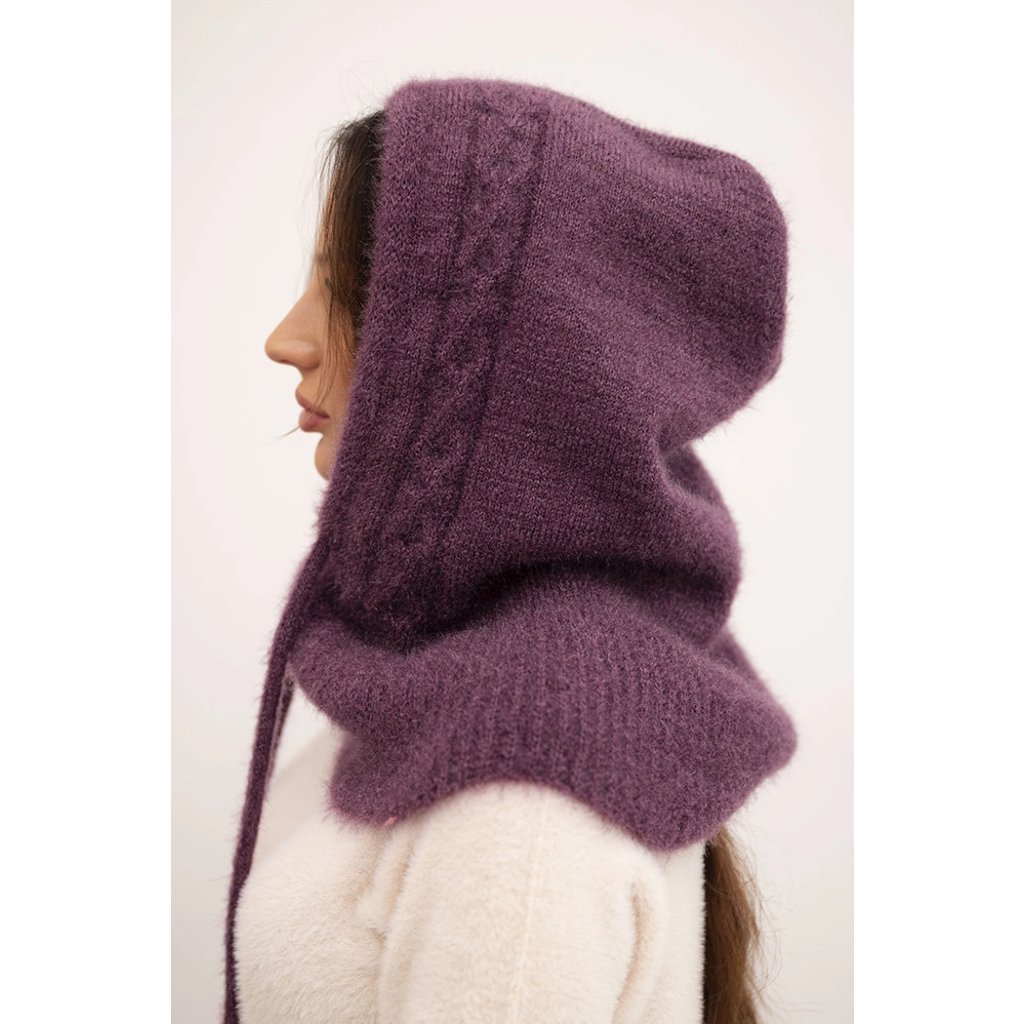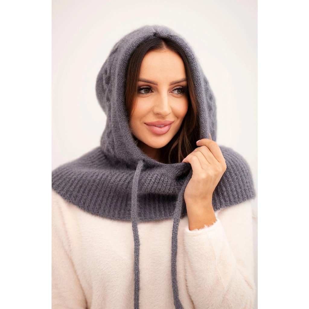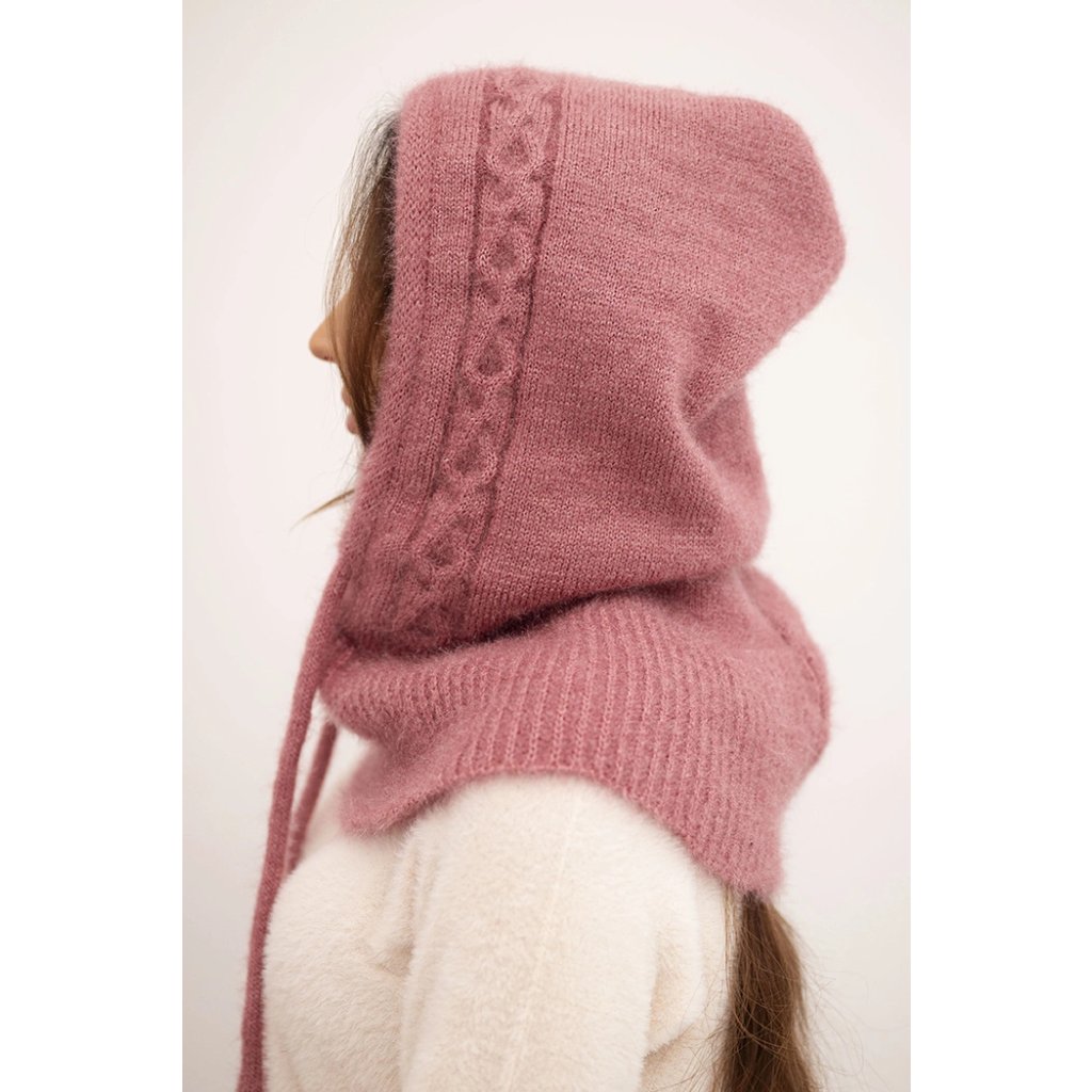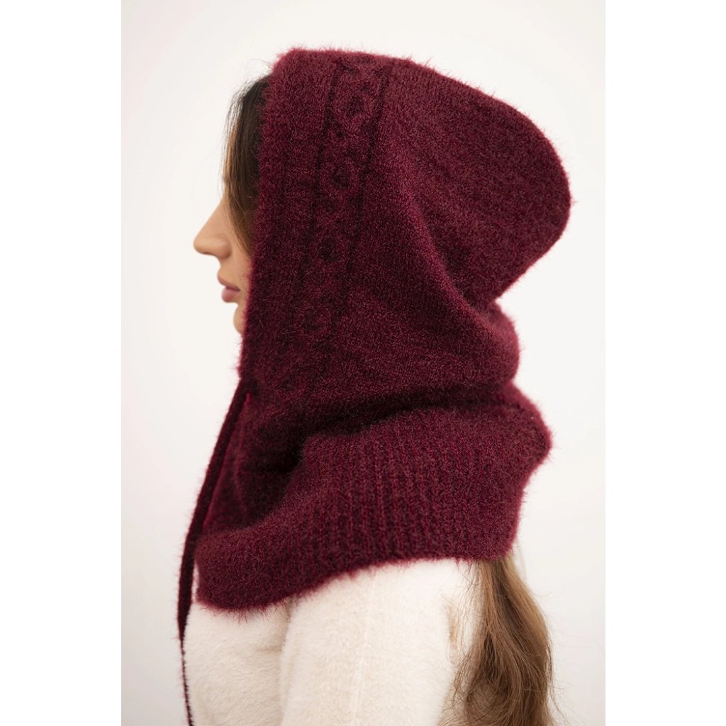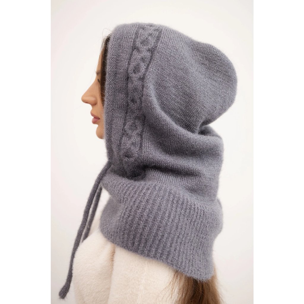 Dámská čepice s kapucí, vázáním a copánkovým vzorem