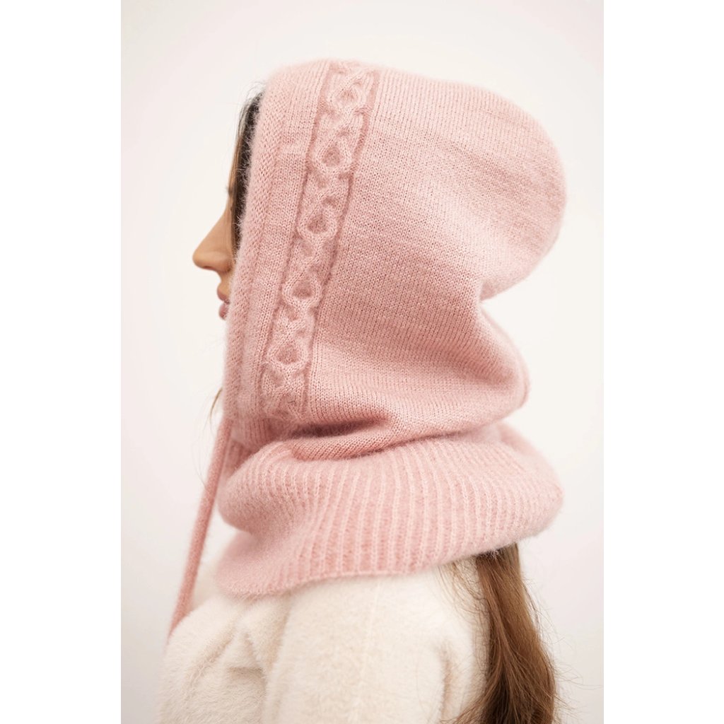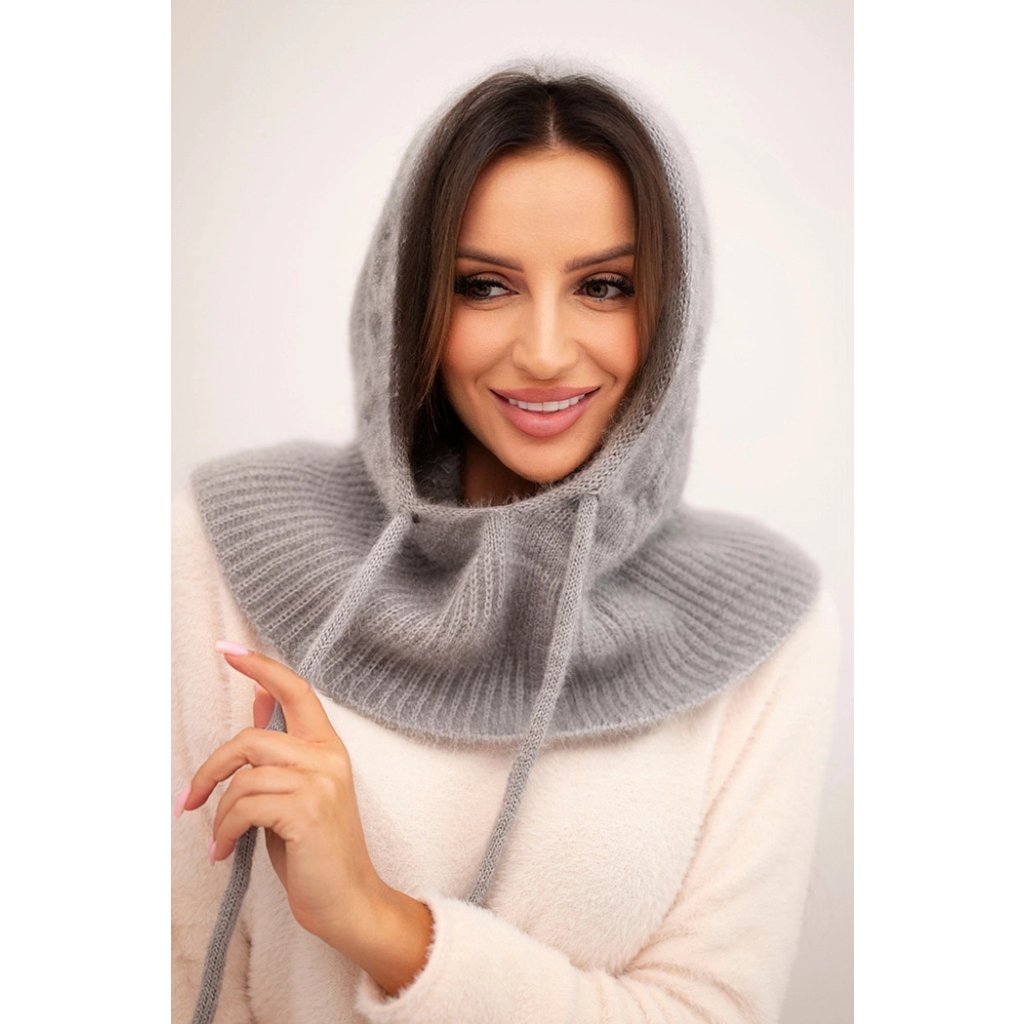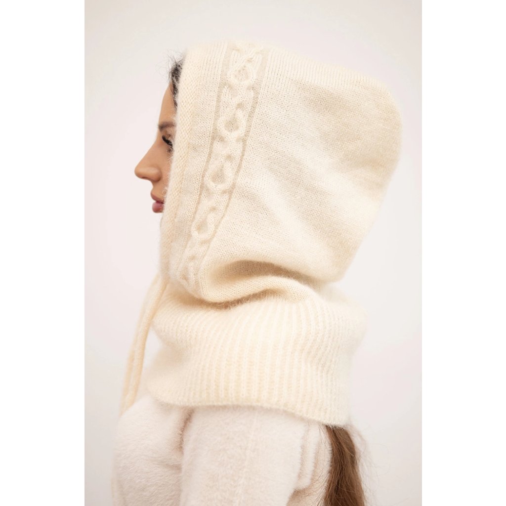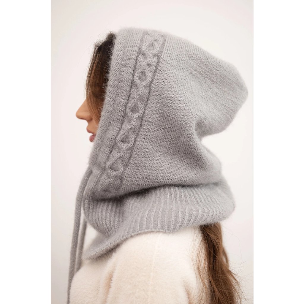 Dámská čepice s kapucí, vázáním a copánkovým vzorem