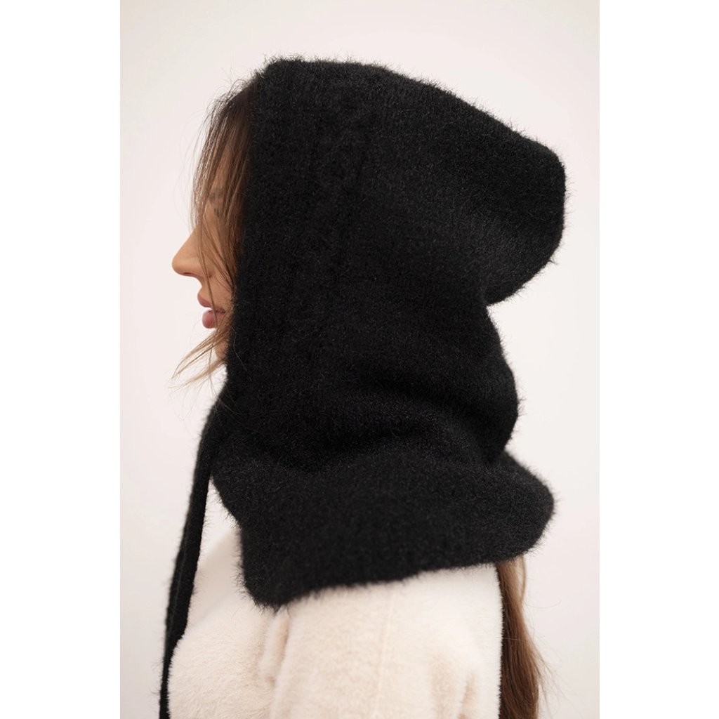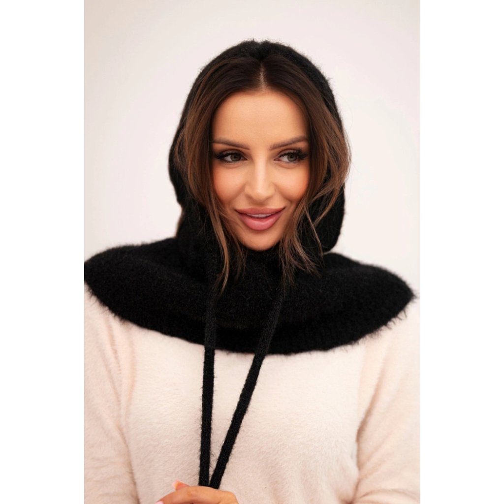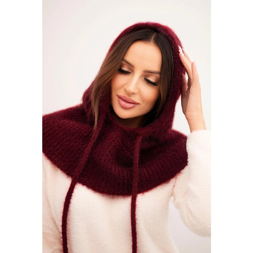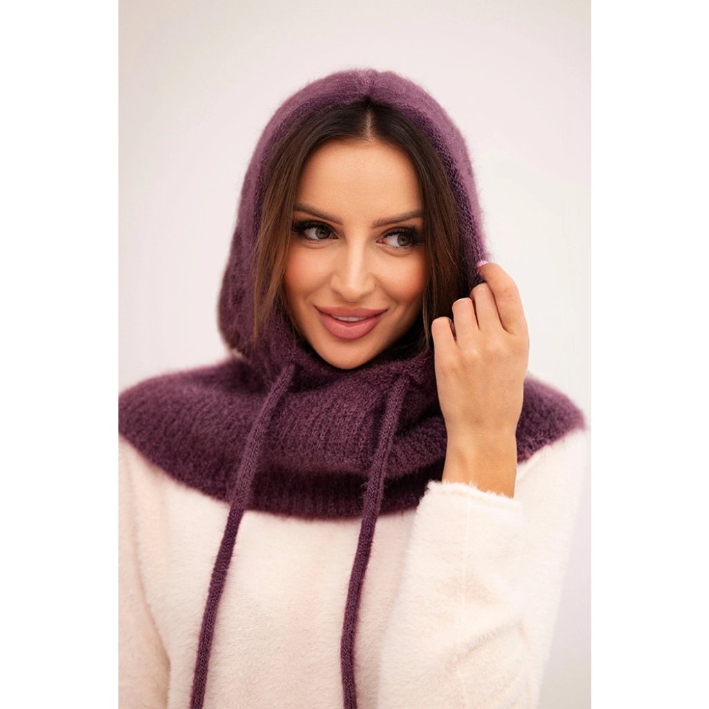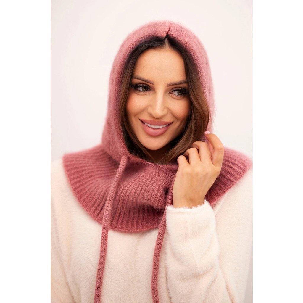 Dámská čepice s kapucí, vázáním a copánkovým vzorem