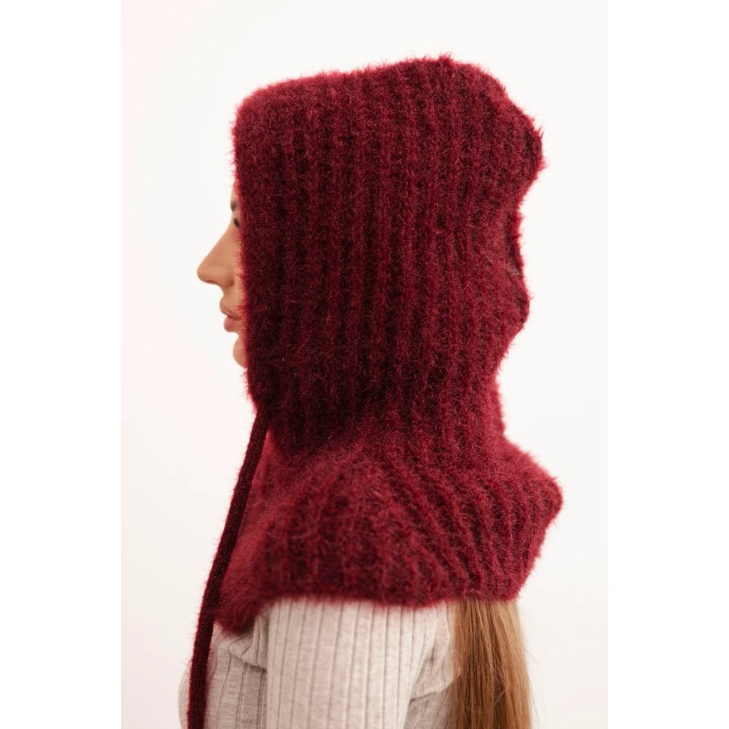 Dámská čepice s kapucí a jemným pletením s tkaničkami hnědá