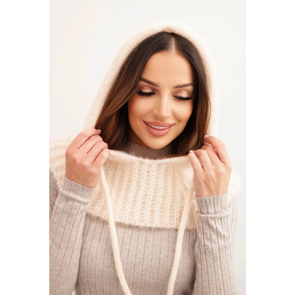 Dámská čepice s kapucí a jemným pletením s tkaničkami hnědá