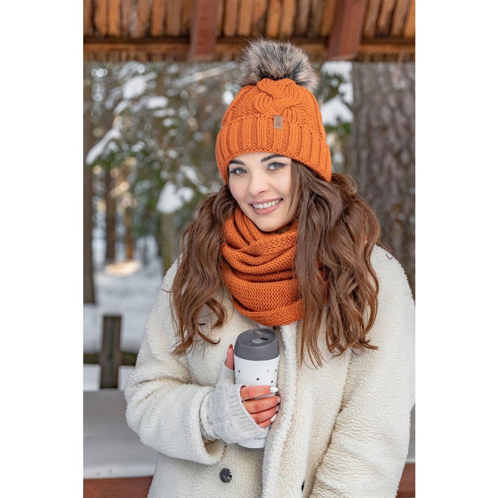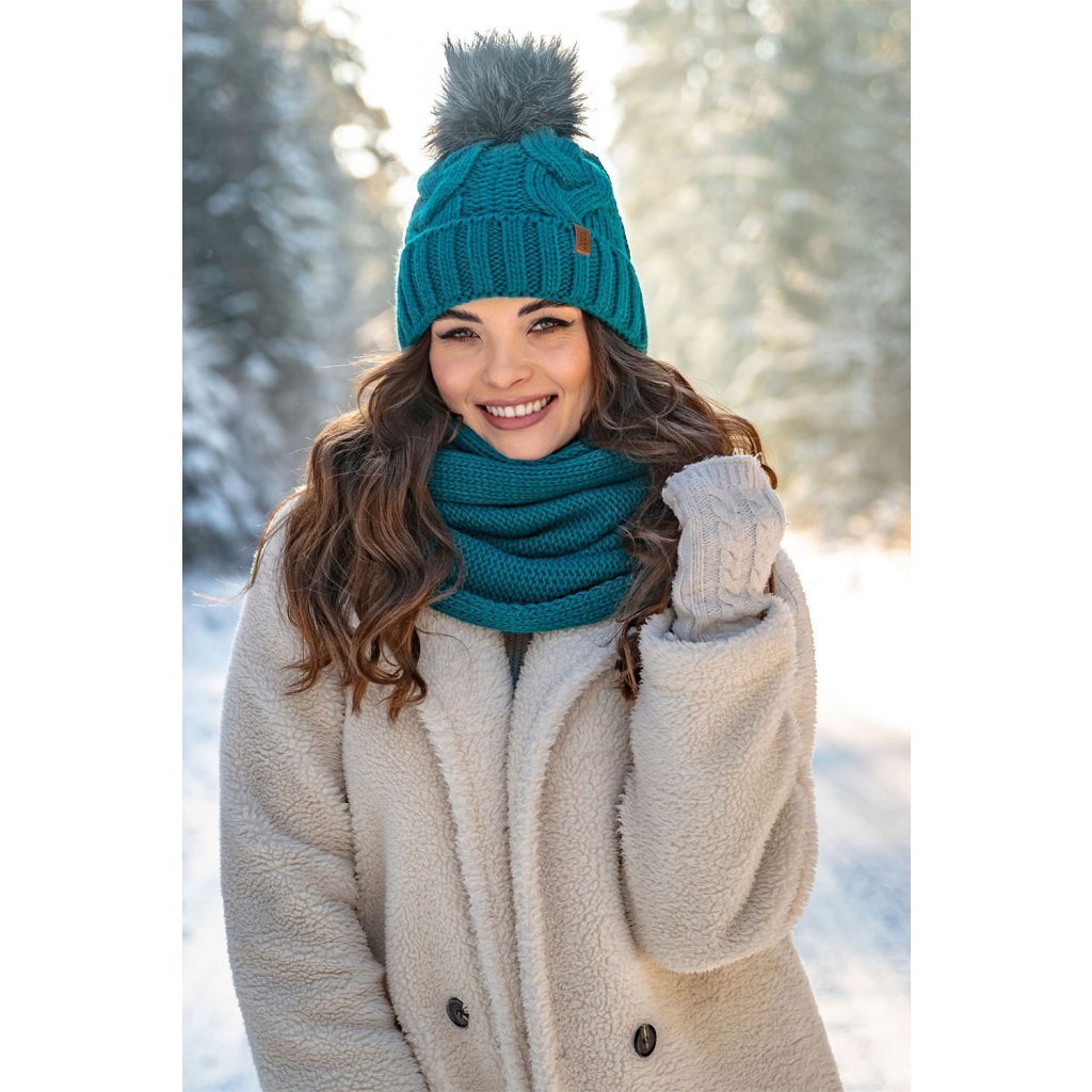 Módní čepice s bambulí. - dokonale přiléhá k hlavě, - z teplé příze s módní vazbou, - vlasy se pod ní nelepí, - zakončená bambulí z umělé kožešiny, - vnitřek podšitý měkkým fleecem, - ideální pro chladné zimní dny. Složení: Složení: 85 % akryl, 15 % polyamid.Doplňkové parametry