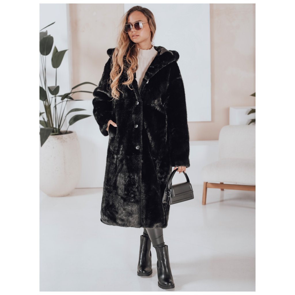 Tento stylový dámský kabát midi délky z měkké kožešiny je perfektní kombinací pohodlí a elegance pro chladnější dny. Díky zapínání na knoflíky, velké kapuci a kapsám poskytuje teplo a módní vzhled. Perfektní volba na podzim a zimu – vylepší každý outfit.