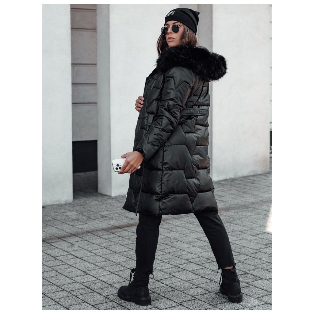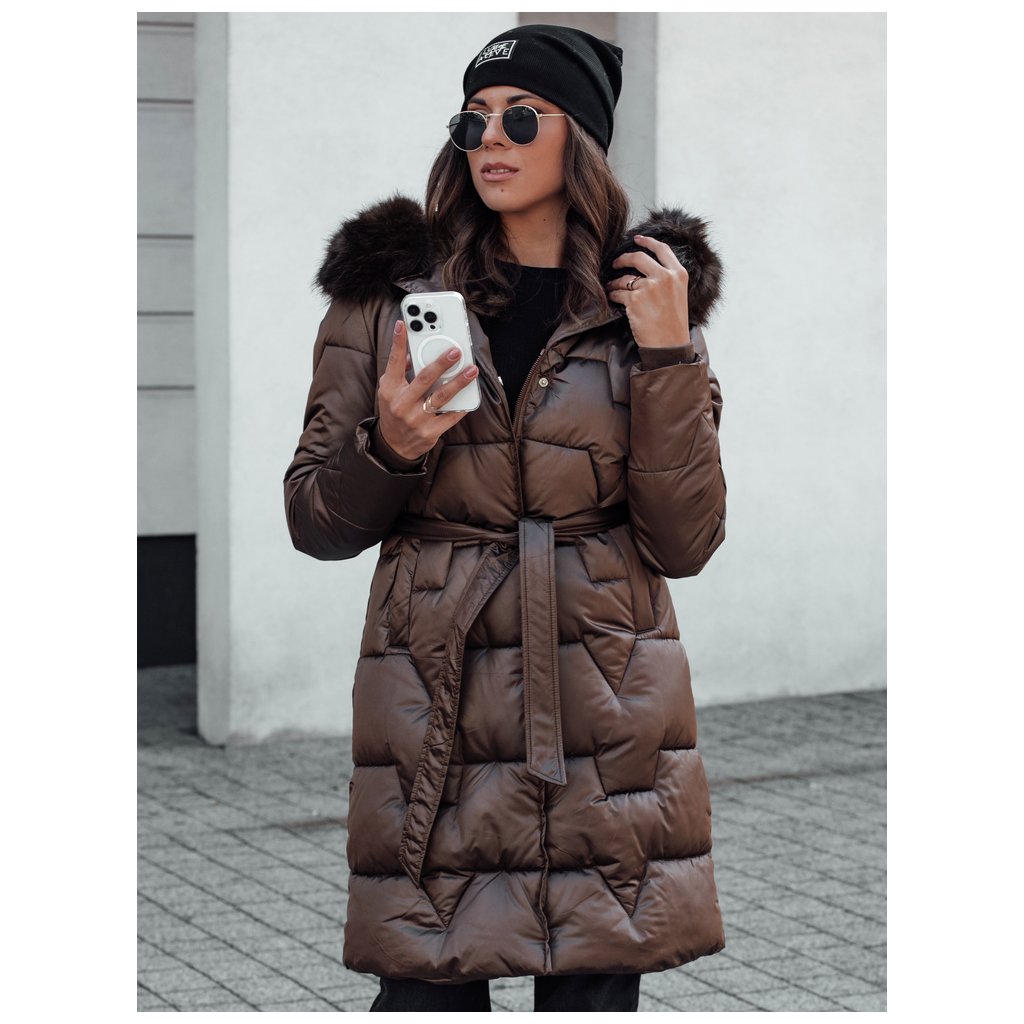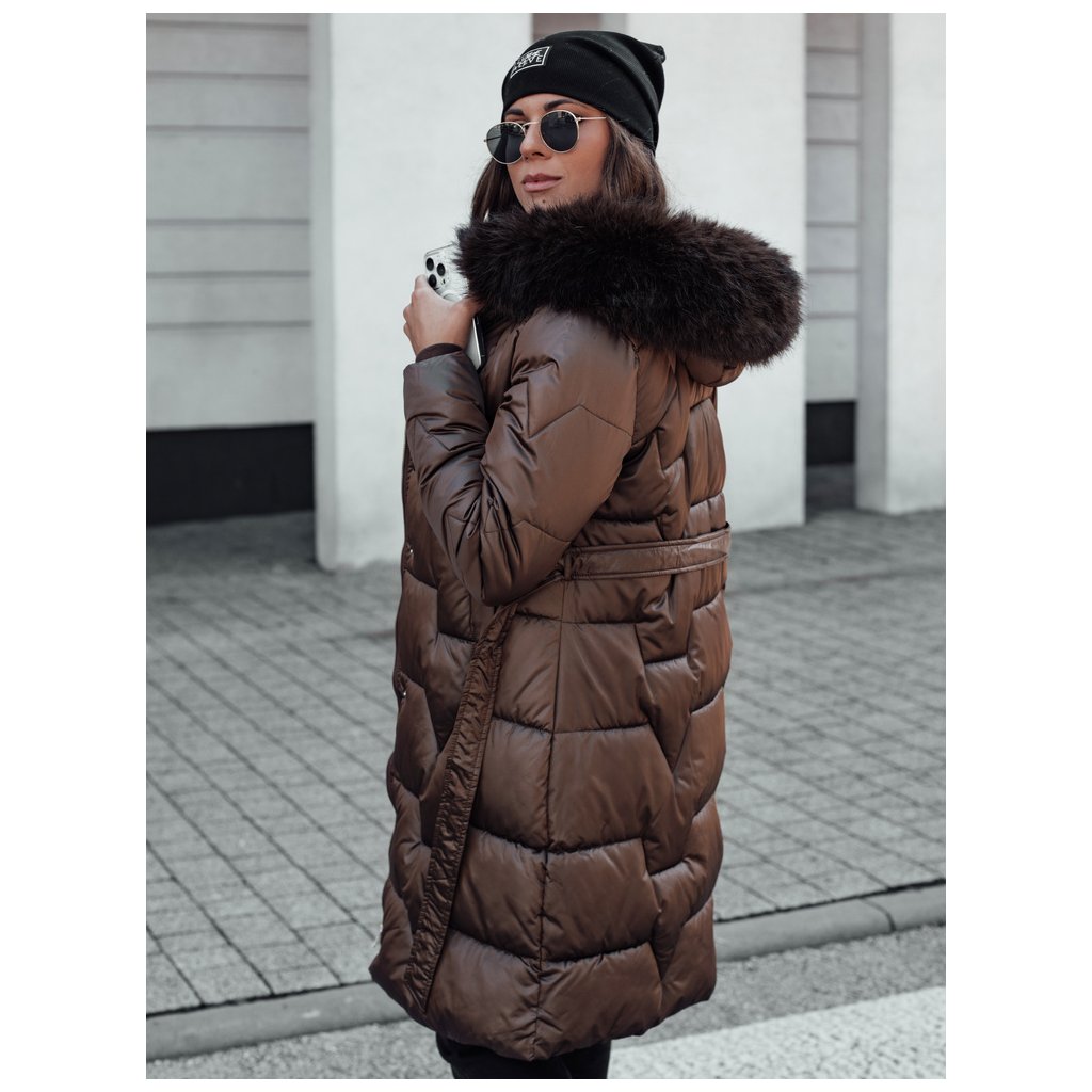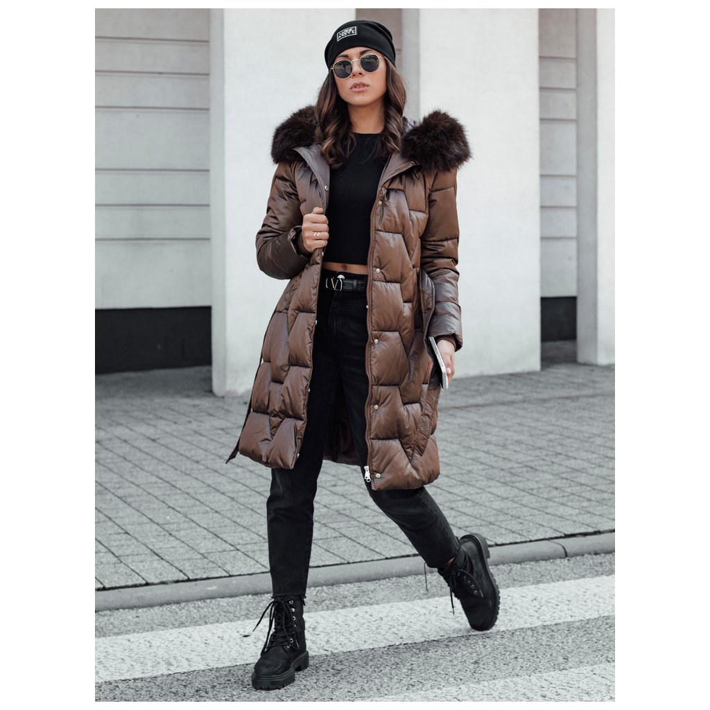 Dámská dlouhá prošívaná bunda s kožešinovým lemem STYLOWQ