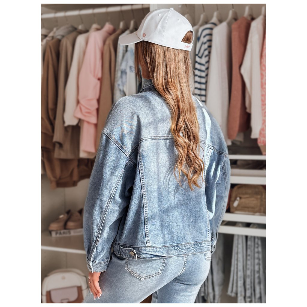 Tato volná džínová bunda má volný střih a zapínání na knoflíky. Čtyři ozdobné kapsy dodávají bundě šarm a nastavitelné rukávy vám umožní přizpůsobit si střih podle vašich preferencí. Ideální pro městský styling a hodí se k džínům i šatům.