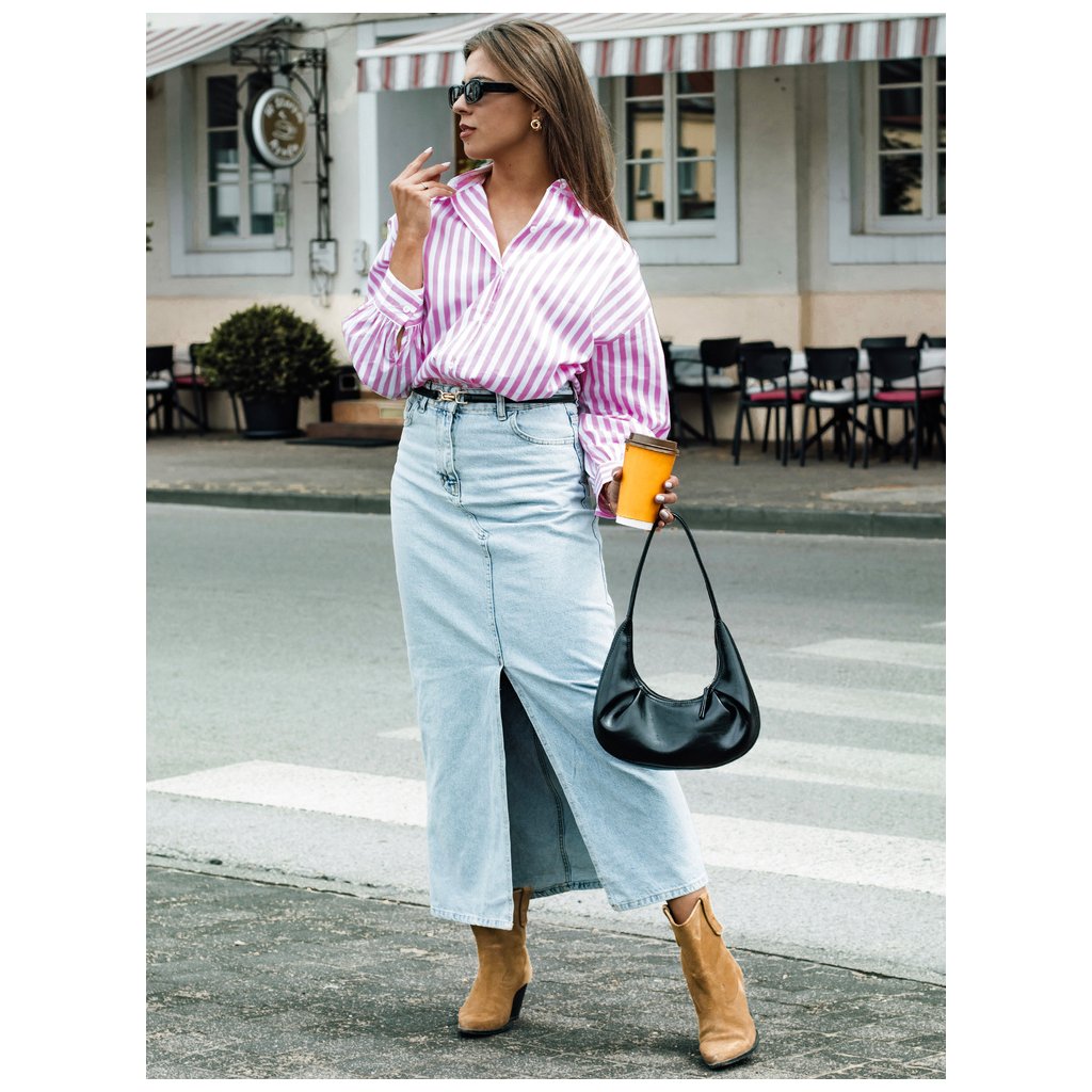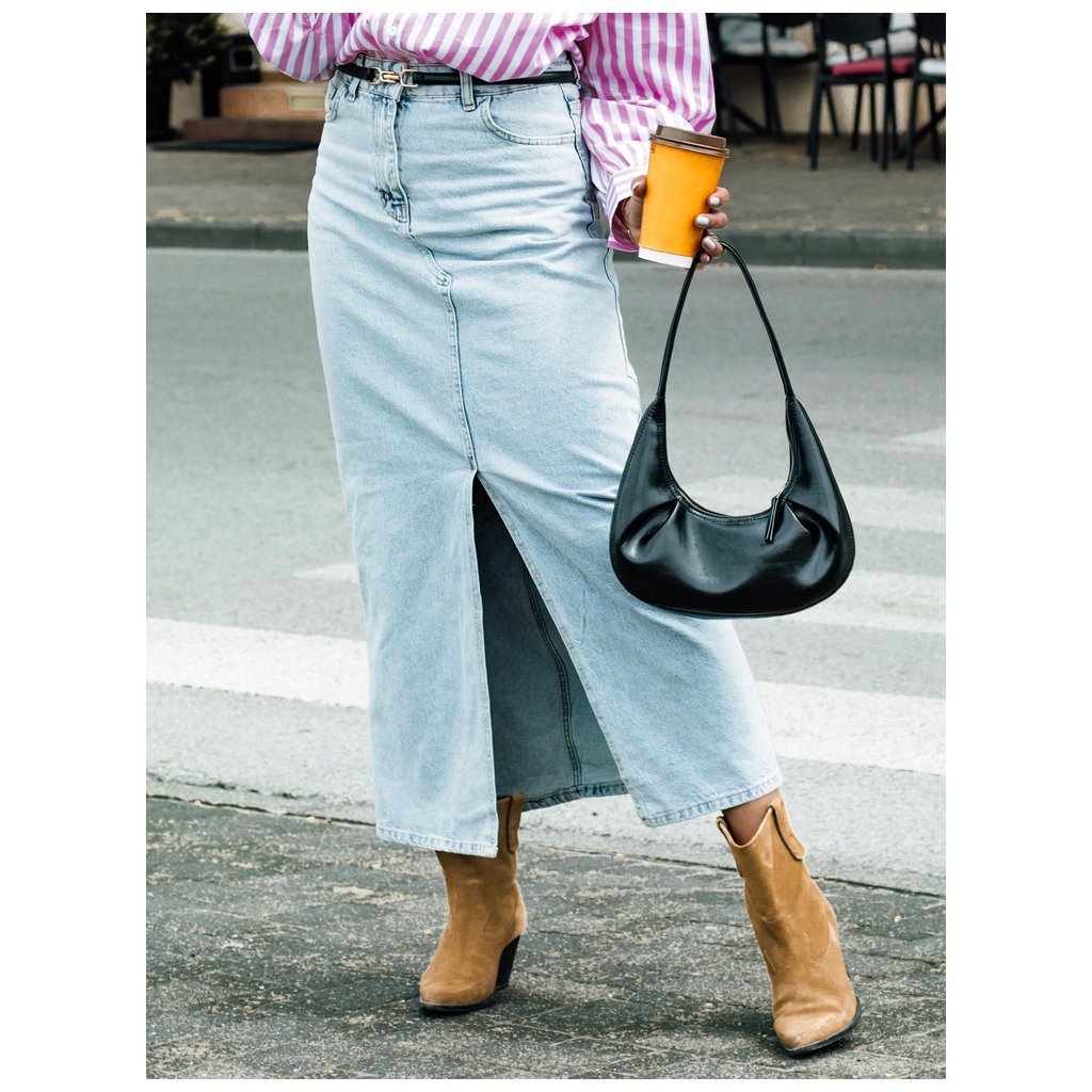 Sukně VIRTON kombinuje klasický styl s moderním nádechem. Tato džínová maxi sukně s výrazným rozparkem a zapínáním na zip a knoflíky je skutečnou nutností pro každou ženu. Všestranná a výrazná, je ideální pro každodenní styling a nabízí pohodlí a eleganci v jednom.