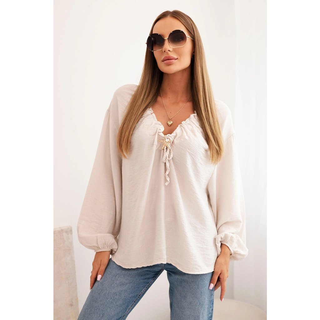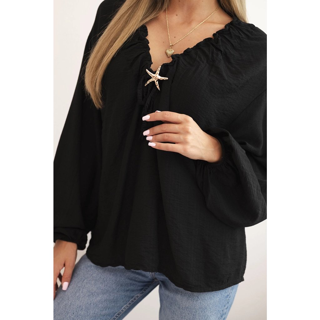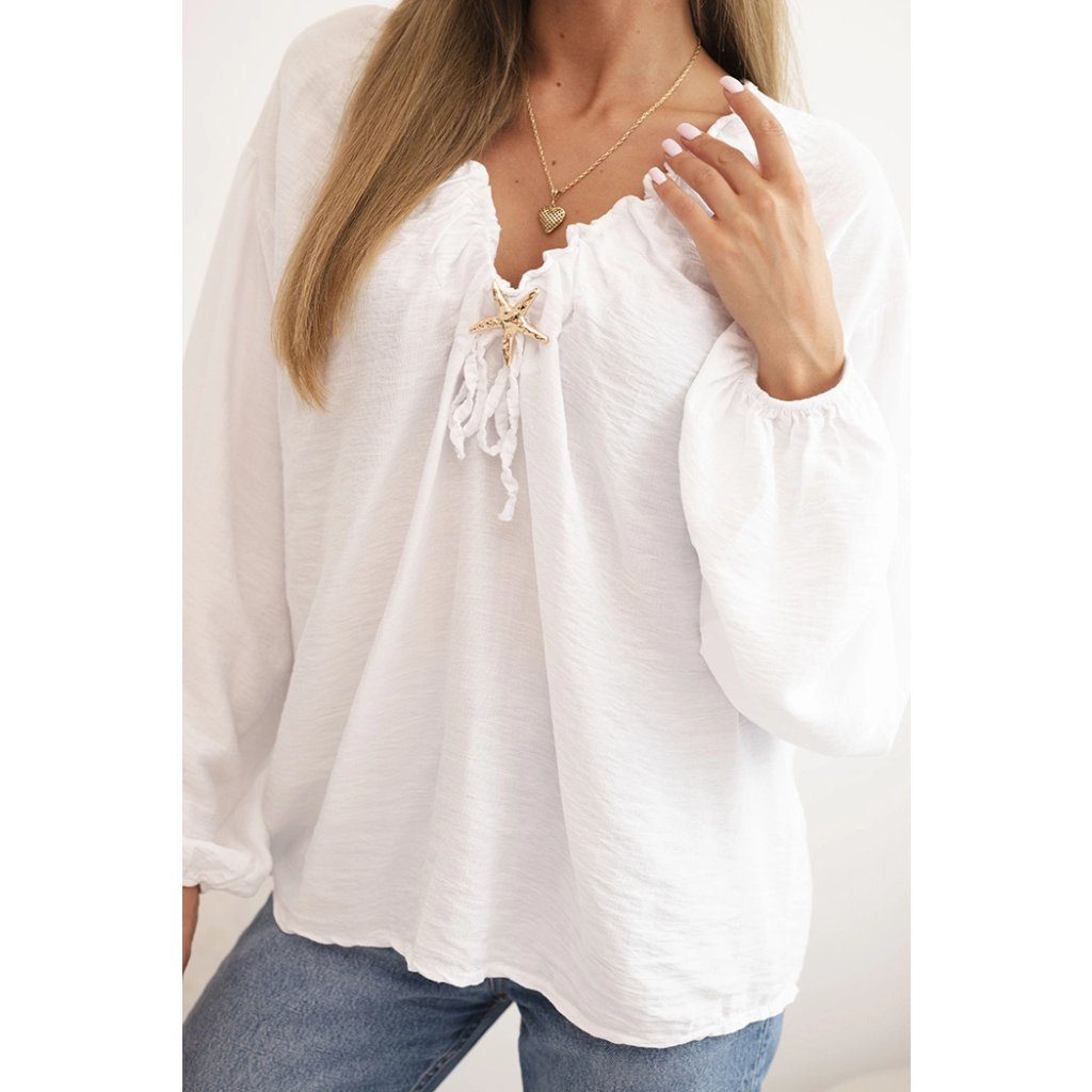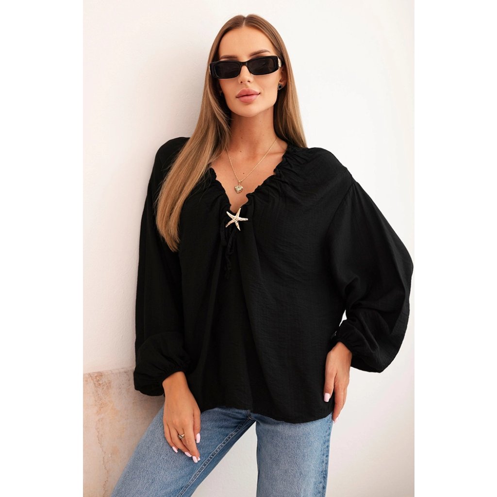 Dámská halenka ART92320 s nařaseným výstřihem a ozdobou
