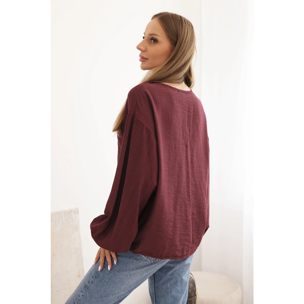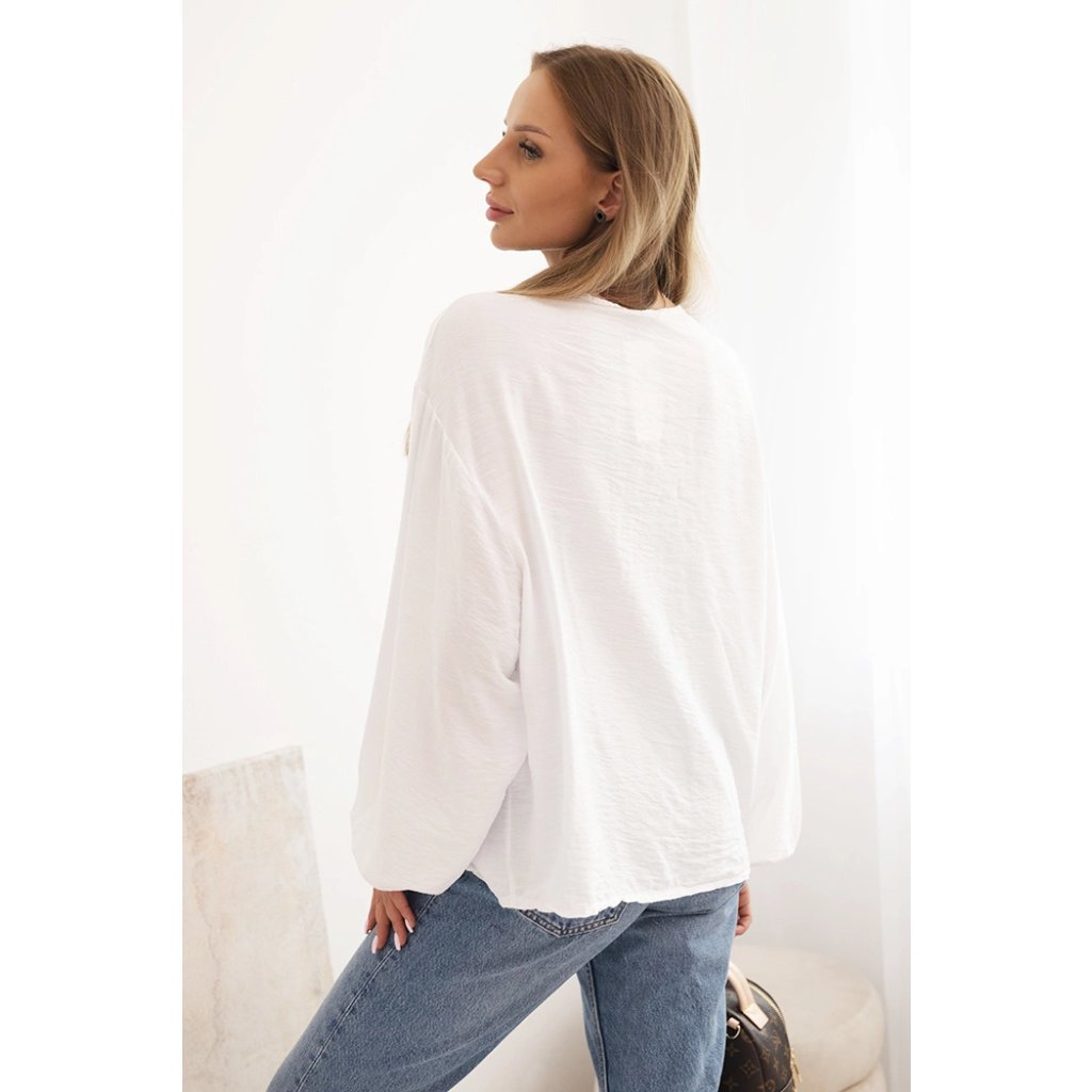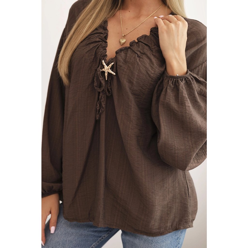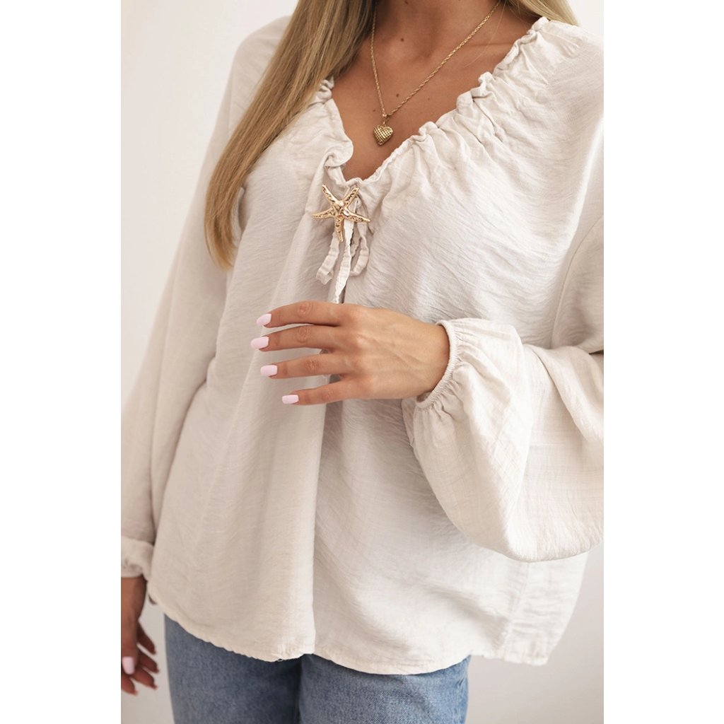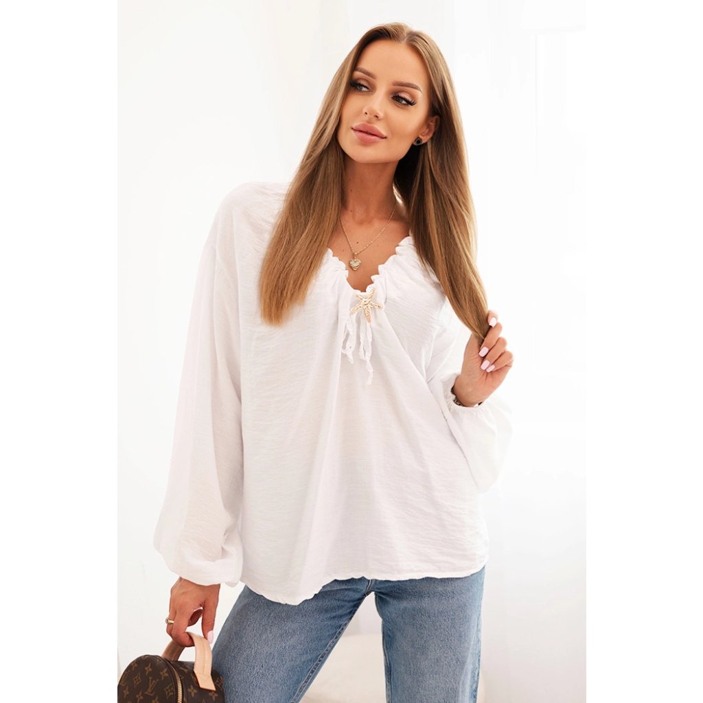 Dámská halenka ART92320 s nařaseným výstřihem a ozdobou