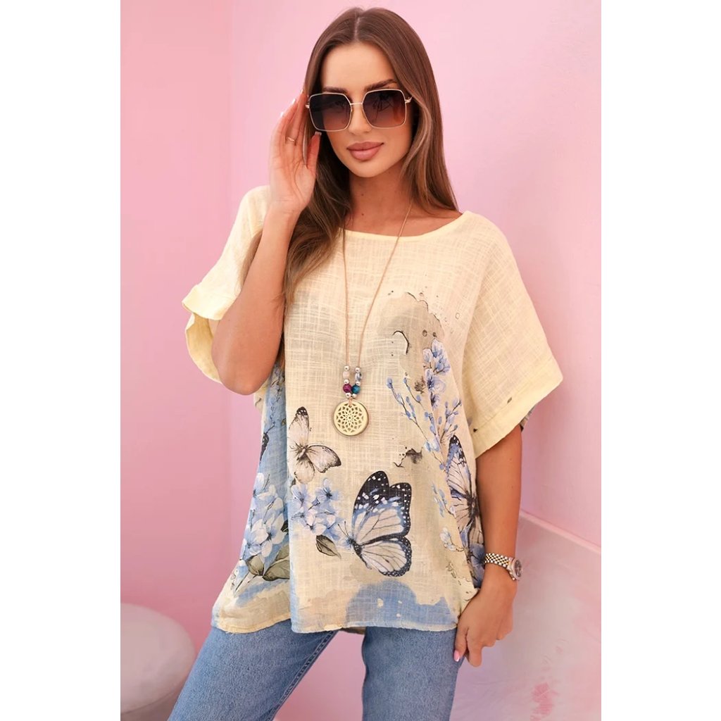 Dámská halenka s přívěškem ART10739-1 s motýly a květinami