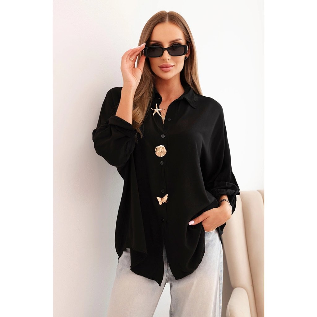 Elegantní dámské košile z viskózy je skvělým návrhem na každou příležitost – jak na denní nošení, tak do práce. Jemný, příjemný na dotek materiál zajišťuje komfort a volnost pohybu. Klasický límeček dodává celku stylový charakter, a dekorativní knoflíky – včetně motivu hvězdy a motýla – zdůrazňují originální styl.