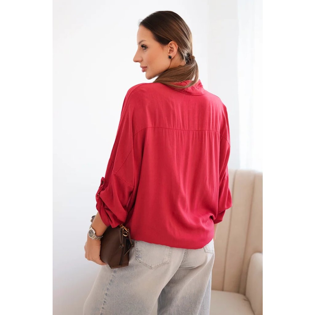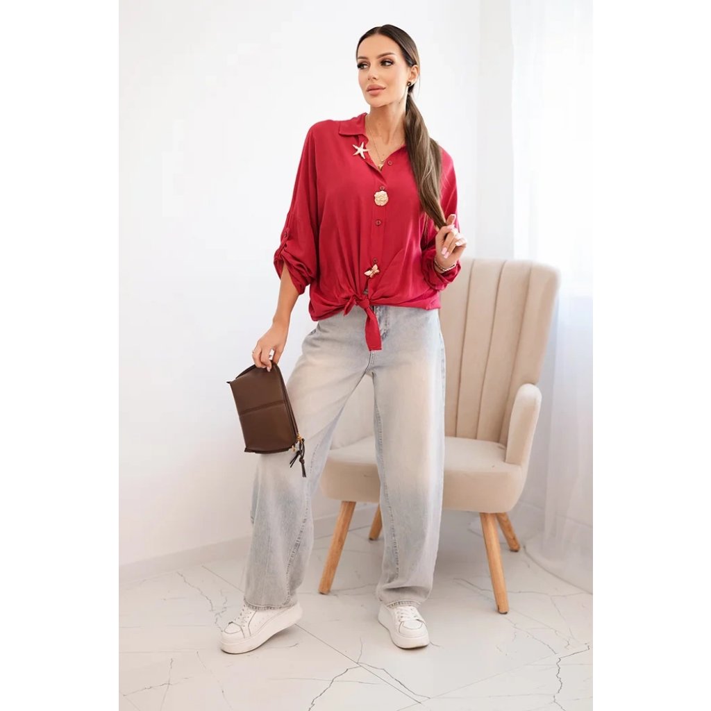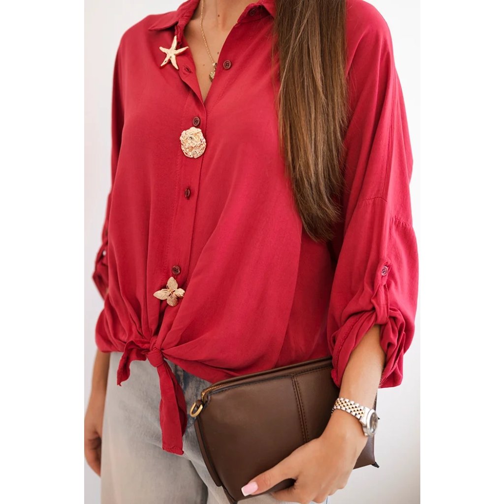 Dámská košile s viskózou, ozdobnými knoflíky a límcem jasno bordová