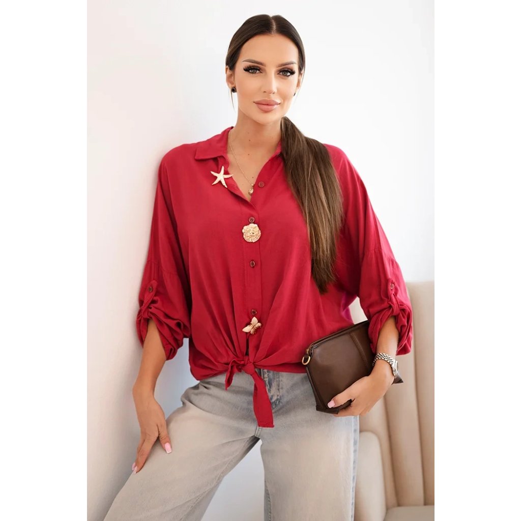 Dámská košile s viskózou, ozdobnými knoflíky a límcem jasno bordová