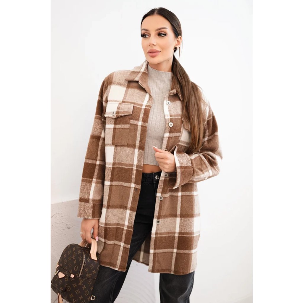 Stylová dámská košile v módním kostkovaném vzoru je ideální volbou na chladnější dny. Vyznačuje se volnějším, delším střihem, který zajišťuje pohodlí a volnost pohybu, a zároveň dodává stylizaci módní charakter. Úspěšně nahradí lehkou bundu nebo cardigan, skvěle se hodí jak k džínům, tak k legínám.
